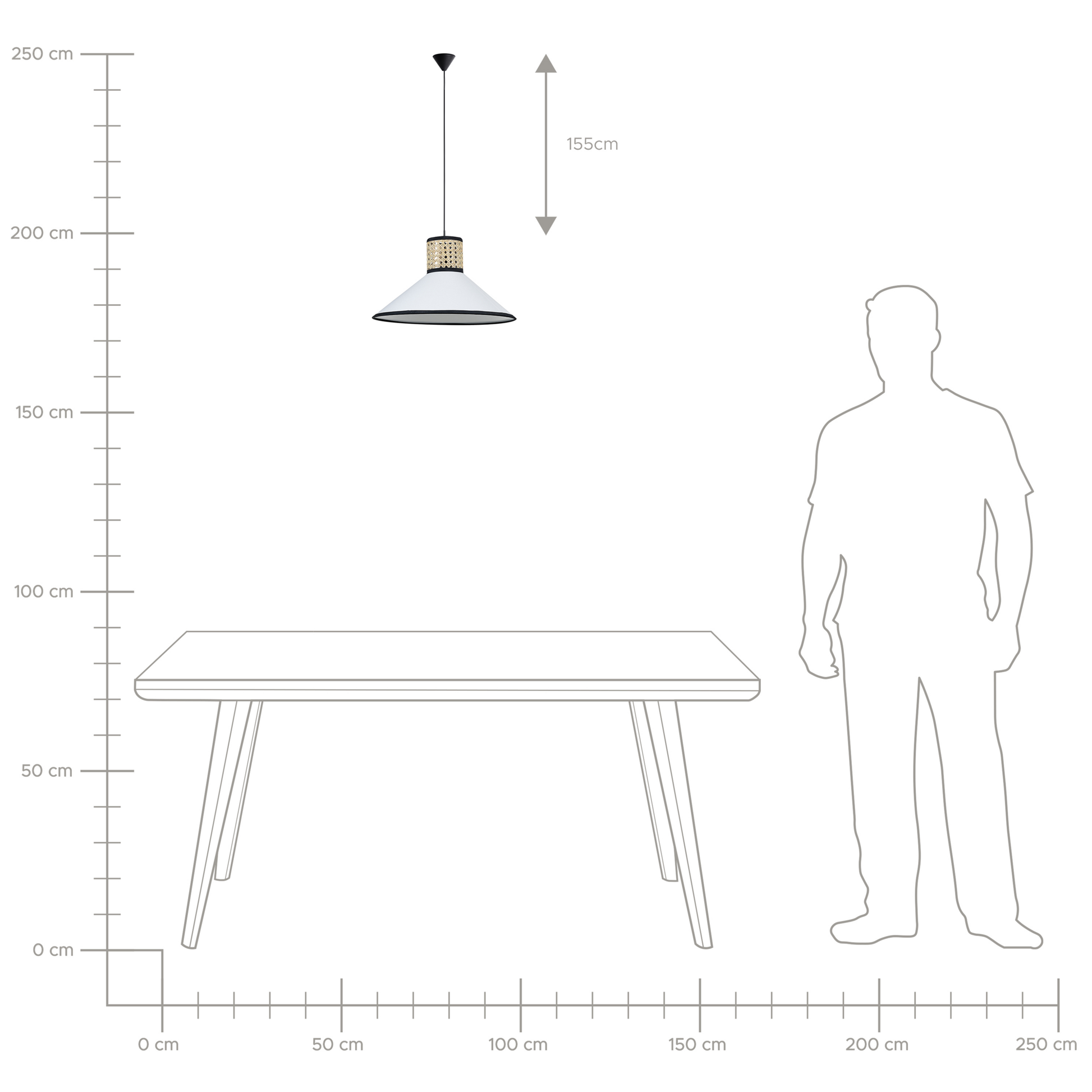 Beschreibung: Beleuchten Sie das Wohn-, Schlaf- oder Esszimmer mit einer Lampe, die nicht nur funktional, sondern auch stilvoll ist. Diese Hängeleuchte harmoniert dank der universellen Farben mit verschiedenen Einrichtungsstilen. Die Kabellänge kann je nach Bedarf angepasst werden. Material: Polyester. Zusätzliches Material: Kunststoff. Material Zusammensetzung: 80% Polyester, 20% Baumwolle Gewicht: 1 Montage: Installation benötigt Holzart: Calamus Holzursprung: China Das Angebot beinhaltet: 1 x Hängeleuchte, Nicht im Lieferumfang enthalten: Leuchtmittel Höhe: 188 zusätzliche Information: Diese Leuchte ist geeignet für Leuchtmittel der Energieklassen A bis G auf einer Skala von A (sehr effizient) bis G (weniger effizient). Geeignet für: LED Leuchtmittel, Eco-Halogen Leuchtmittel, Energiesparleuchtmittel., Die Stromkabel dürfen nur von einem qualifizierten Elektriker angepasst werden., Hinweis! Beschädigungsgefahr! Bitte verwenden Sie keine Messer oder andere spitze oder scharfe Gegenstände, um die Verpackung zu öffnen, da das Produkt sonst beschädigt werden könnte. Breite: 40 Tiefe: 40 Art: Hängelampe Stil: Modern Allgemeine Farbe: Naturfarben Hauptmaterial: Polyester Fassung: Max. 60 W IP Protection Code: IP 20