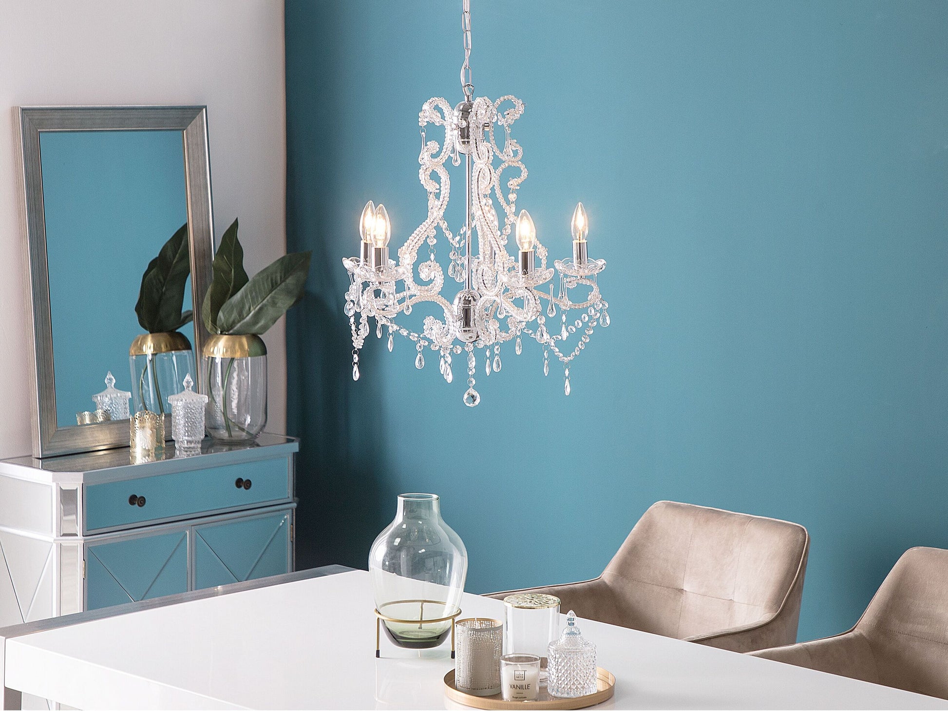 Kronleuchter Metall / Acrylglas transparent / silber Kristall-Optik 5-flammig ASCAR