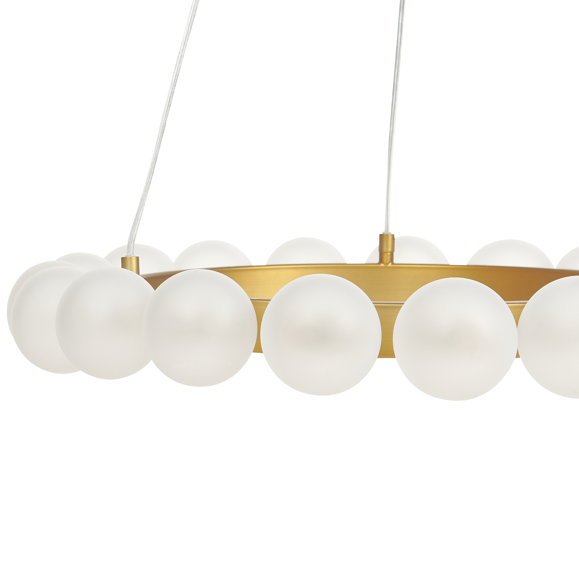 Entdecken Sie den Charme dieser 18-flammigen Pendelleuchte, die für moderne und glamouröse Wohnräume entworfen wurde. Hergestellt aus Eisen und Glas wirft sie ein schönes und elegantes Licht. Der goldene Farbton harmoniert wunderbar mit anderen Dekorationen aus Metall und macht sie zu einer vielseitigen Ergänzung für verschiedene Räume. Sie lässt sich zudem einfach zusammenbauen und ist pflegeleicht. Erhellen Sie Ihr Zuhause mit der Schönheit von Eisen, Glas und Gold – eine Kombination, die sowohl Stil als auch Leichtigkeit verkörpert. Material: Eisen. Zusätzliches Material: Glas. Gewicht: 3 Montage: Erfordert Installation und Montage Das Angebot beinhaltet: 1 x Hängeleuchte, Nicht im Lieferumfang enthalten: Leuchtmittel Höhe: 146 zusätzliche Information: Die Stromkabel dürfen nur von einem qualifizierten Elektriker angepasst werden., Diese Leuchte ist geeignet für Leuchtmittel der Energieklassen A bis G auf einer Skala von A (sehr effizient) bis G (weniger effizient). Geeignet für: LED Leuchtmittel, Eco-Halogen Leuchtmittel, Energiesparleuchtmittel., Die Lampe besitzt keinen eigenen Ein/Ausschalter und benötigt daher einen separaten Schalter an der Wand Breite: 59 Tiefe: 59 Art: Hängelampe Stil: Glamourös Allgemeine Farbe: Gold Hauptmaterial: Eisen Fassung: 25 W IP Protection Code: IP 20