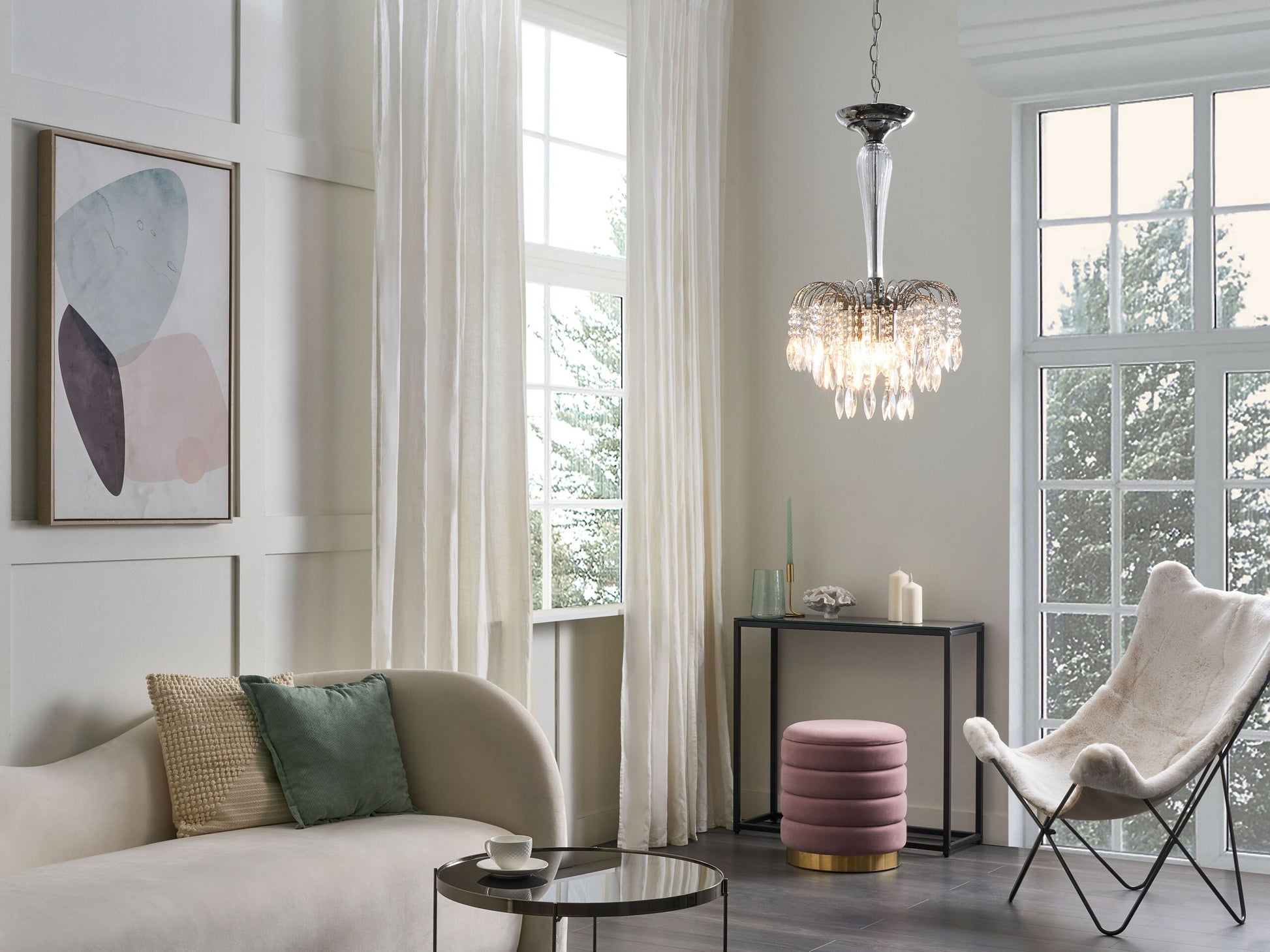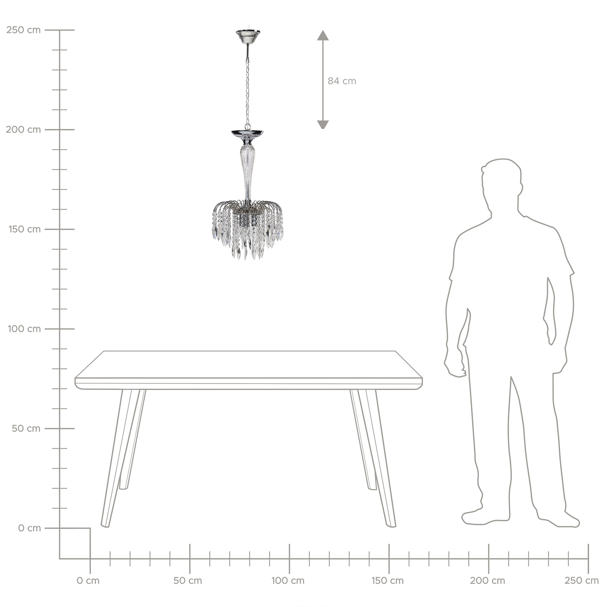 Verleihen Sie Ihrem Wohnzimmer mit diesem zeitlosen Kronleuchter im Vintage-Stil einen neuen Look. Sorgfältig aus widerstandsfähigem Metall gefertigt, ist die Lampe mit Glaskristallen verziert, die als Blickfang dienen und das Gesamtdesign aufwerten. Dank der 3-Punkt-Beleuchtung kann das Produkt jeden Raum mit einem warmen und einladenden Glanz erhellen. Material: Eisen. Zusätzliches Material: Glas. Gewicht: 3 Montage: Installation benötigt Das Angebot beinhaltet: 1 x Hängeleuchte, Nicht im Lieferumfang enthalten: Leuchtmittel Höhe: 157 zusätzliche Information: Die Stromkabel dürfen nur von einem qualifizierten Elektriker angepasst werden. Breite: 34 Tiefe: 27 Art: Kronleuchter Stil: Retro Allgemeine Farbe: Silber Hauptmaterial: Eisen Fassung: 40 W IP Protection Code: IP 20