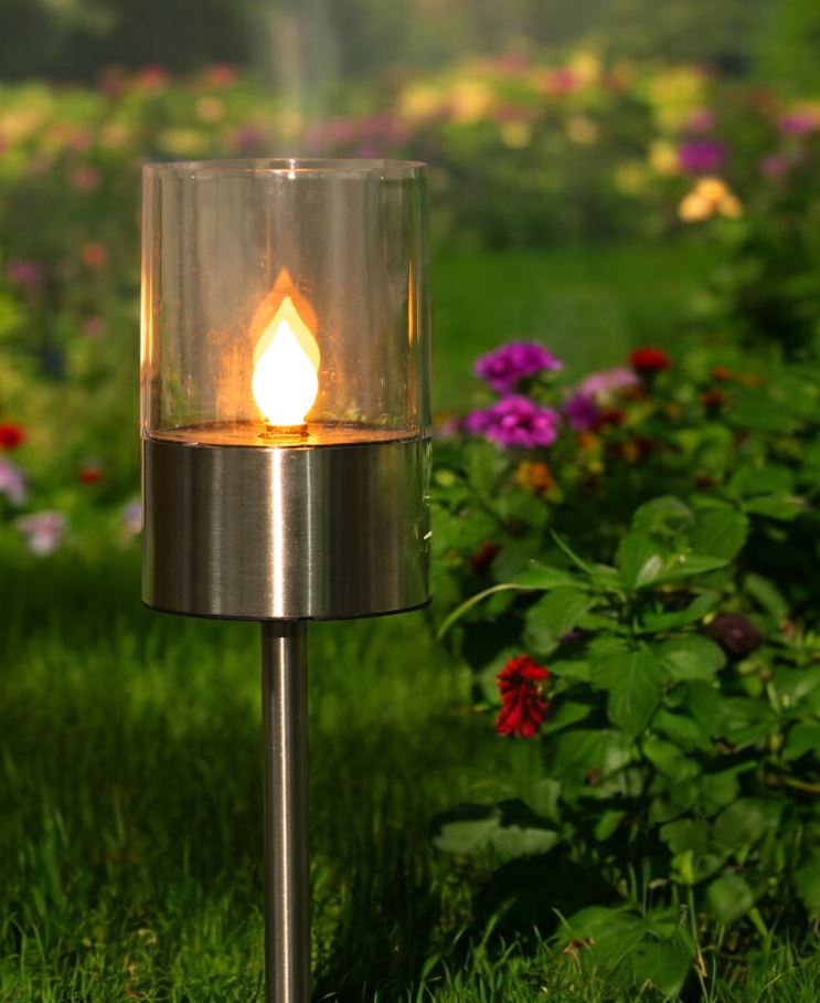 LED Solar Leuchte mit Kerzenflackern aus Edelstahl mit 1 LED