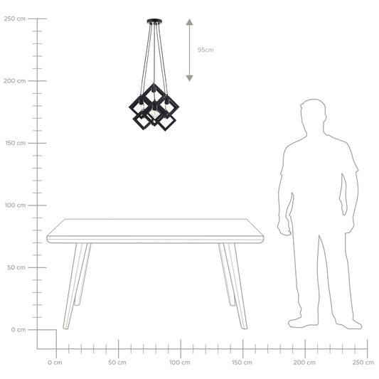 Hängelampe schwarz 6-flammig quadratisch CHRISOLA