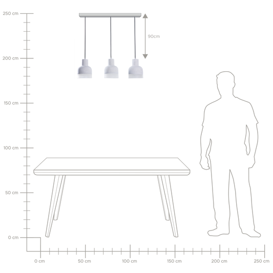 Hängelampe Beton hellgrau 3-flammig Glockenform LUNI