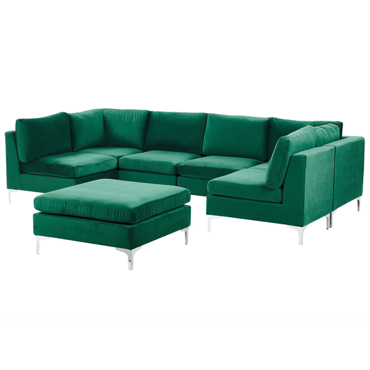 Wohnlandschaft U-förmig Samtstoff grün mit Ottomane 6-Sitzer EVJA