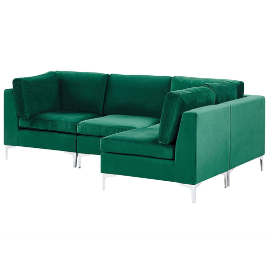 4-Sitzer Ecksofa Samtstoff grün rechtsseitig mit Ottomane EVJA