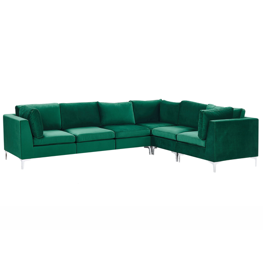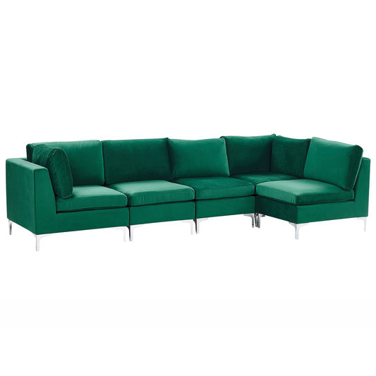 Ausverkauft5-Sitzer Ecksofa Samtstoff grün linksseitig EVJA