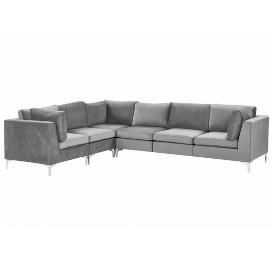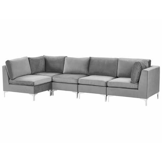 5-Sitzer Ecksofa Samtstoff grau rechtsseitig EVJA