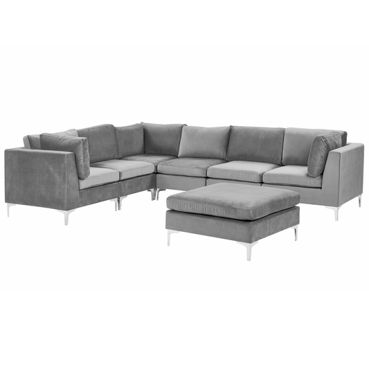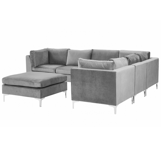 Wohnlandschaft U-förmig Samtstoff grau mit Ottomane 6-Sitzer EVJA