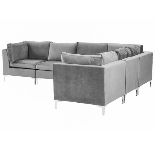Wohnlandschaft U-förmig Samtstoff grau 6-Sitzer EVJA