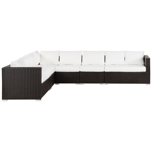 Lounge Set mit Tisch 8-Sitzer XXL rechtsseitig modular Polyrattan Dunkelbraun