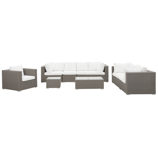 Lounge Set mit Tisch 8-Sitzer MAESTRO modular Polyrattan Taupe