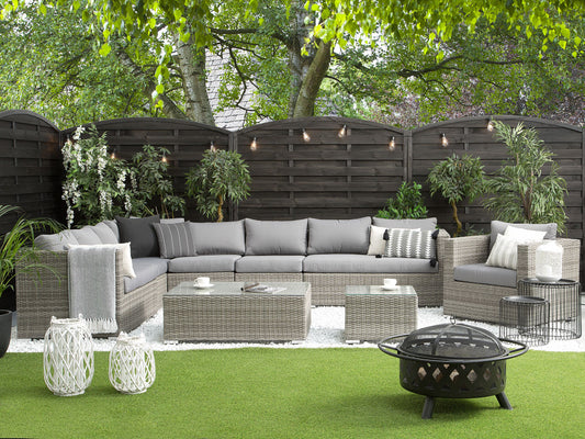 Lounge Set mit Tisch 8-Sitzer XXL rechtsseitig modular Polyrattan Grau