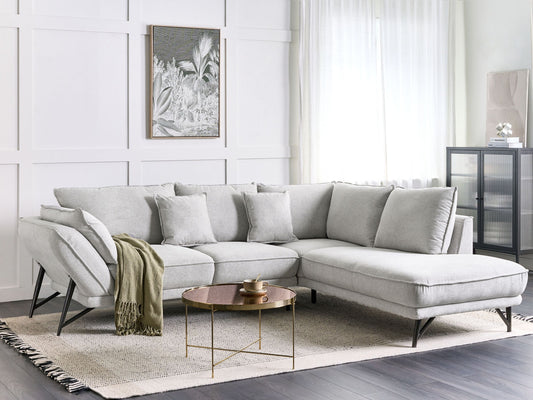 3-Sitzer Ecksofa Samtstoff hellgrau rechtsseitig ALTAN