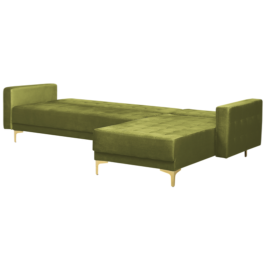 Ecksofa rechtsseitig Samtstoff grün Schlaffunktion ABERDEEN