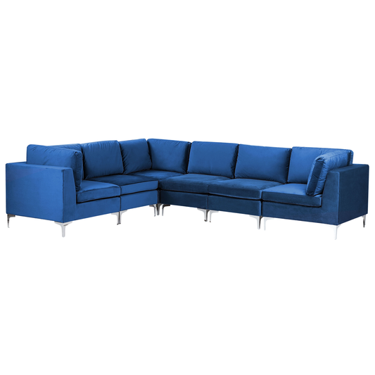 6-Sitzer Ecksofa Samtstoff marineblau rechtsseitig EVJA