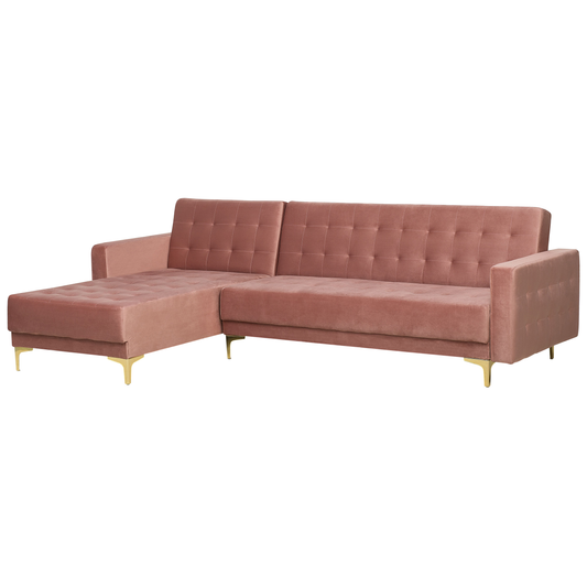 Ecksofa rechtsseitig Samtstoff rosa Schlaffunktion ABERDEEN