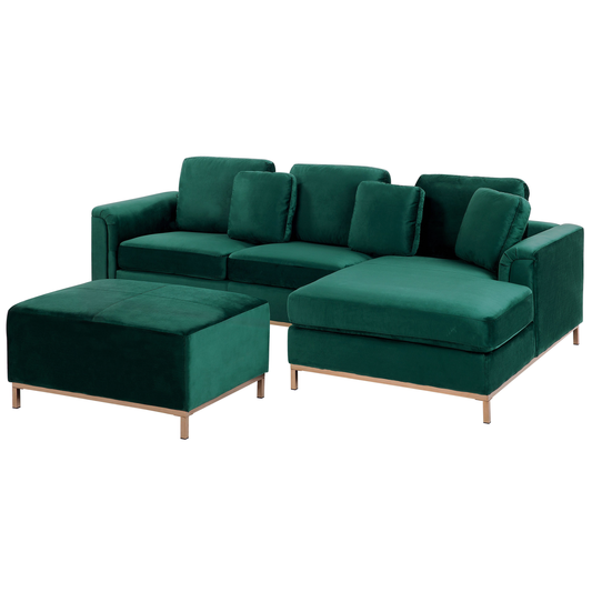 Ecksofa Samtstoff grün linksseitig mit Ottomane OSLO