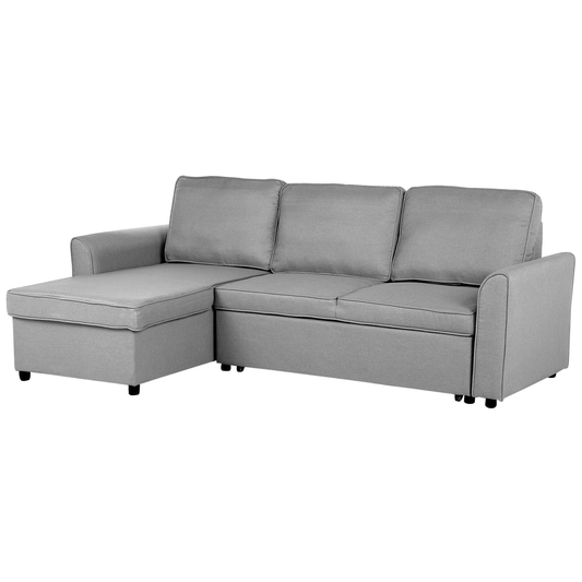 Ecksofa mit Schlaffunktion Polsterbezug hellgrau rechtsseitig NESNA