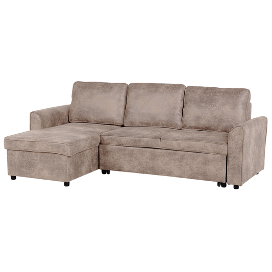 Ecksofa mit Schlaffunktion Lederoptik braun rechtsseitig NESNA
