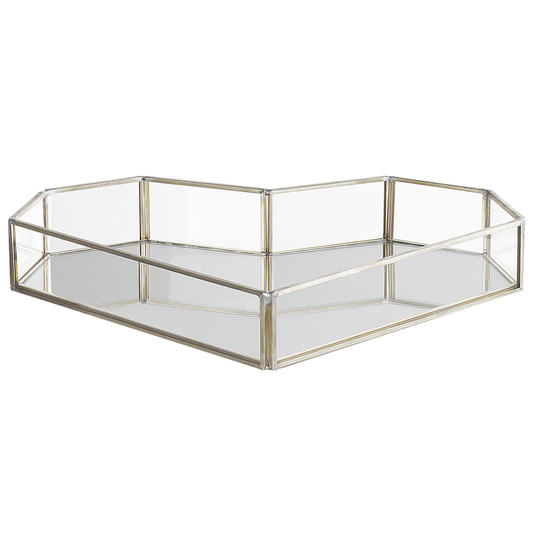 Dekotablett Glas / Edelstahl silber Herzform Spiegeleffekt PONTIVY