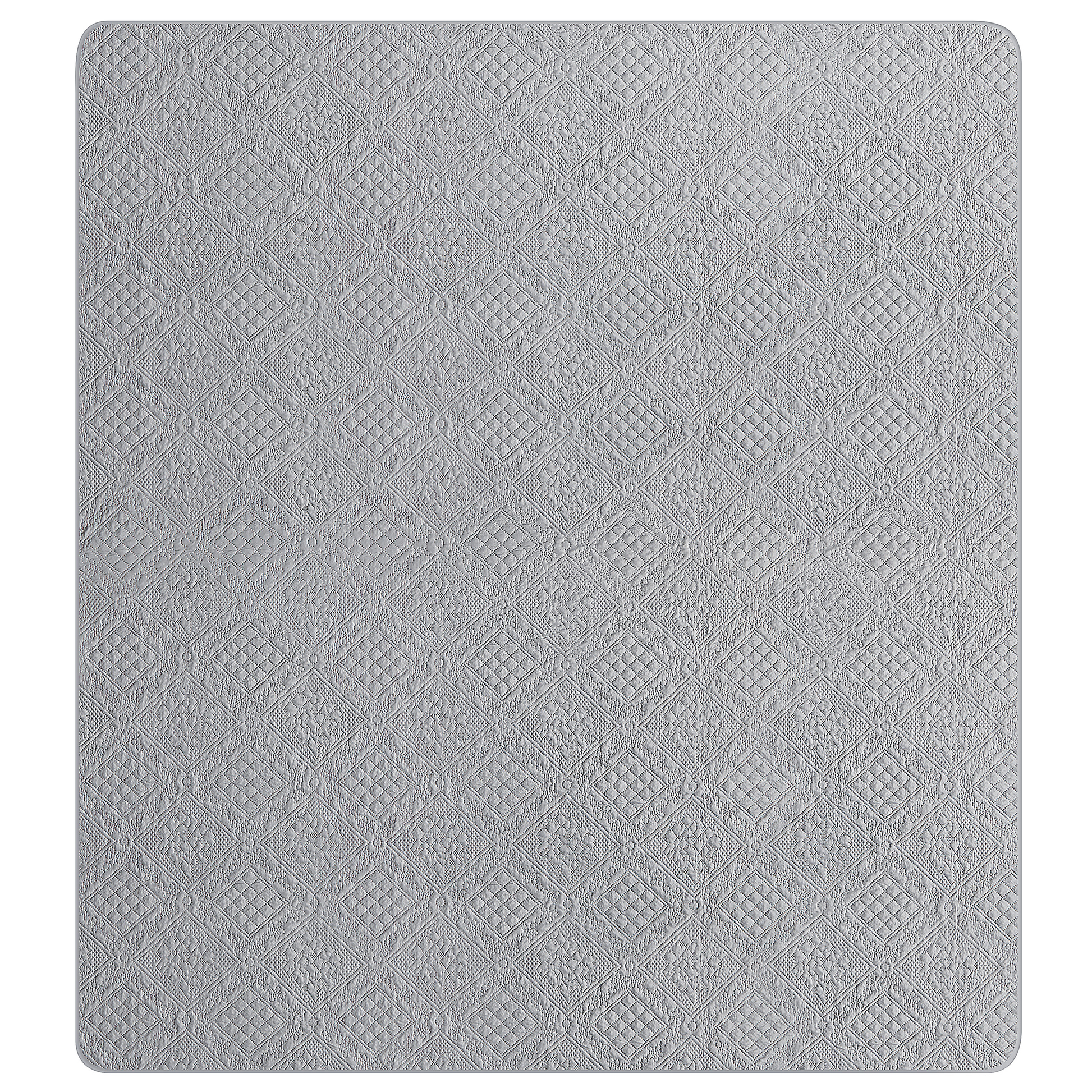 Diese wunderschöne Tagesdecke ist die perfekte Ergänzung für jedes Bett. Sie ist aus strapazierfähigem und pflegeleichtem Polyester gefertigt und lässt sich mit ihrer neutralen Farbgebung leicht in jede Einrichtung einfügen. Zudem ist sie mit einem schönen Prägemuster versehen, das mit seinen geometrischen Formen und floralen Akzenten die Aufmerksamkeit auf sich zieht. Für Ihren Komfort wird das Set mit zwei weich gefüllten Zierkissen geliefert. Material: Polyester. Material Zusammensetzung: 100% Polyester Montage: Benötigt keine Montage Kissen Abmessungen: 45x45x12 Das Angebot beinhaltet: 2 x Zierkissen, 1 x Tagesdecke Höhe: 0.6 Breite: 200 Länge: 220 Art: Tagesdecke mit Kissen Allgemeine Farbe: Grau Muster: Kein Muster Hauptmaterial: Polyester Füllmaterial: Polyester Dichte: 70