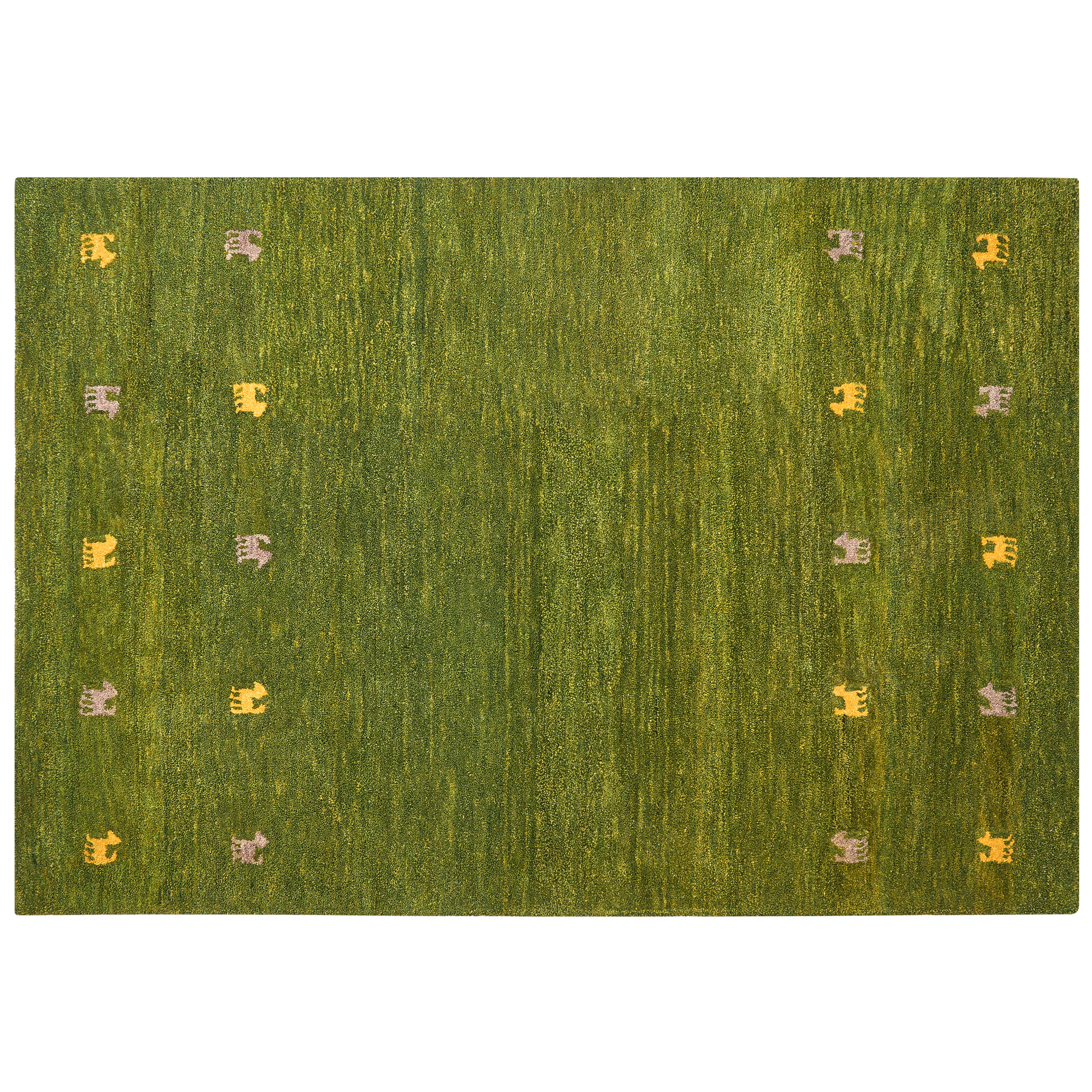 Gabbeh Teppich Wolle grün 160 x 230 cm Tiermuster Hochflor YULAFI