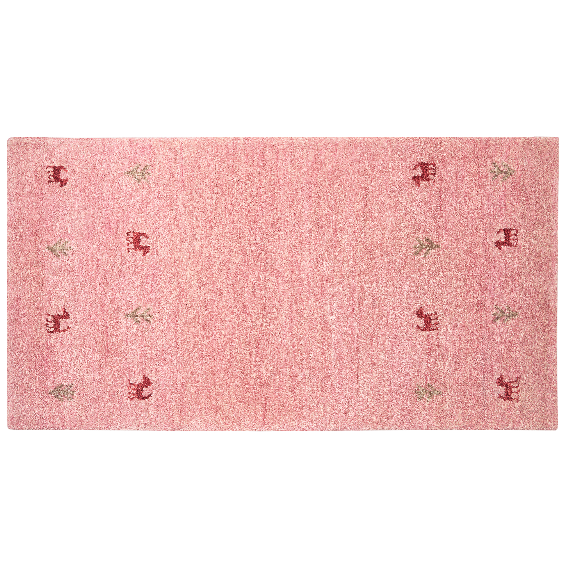 Gabbeh Teppich Wolle rosa 80 x 150 cm Tiermuster Hochflor YULAFI
