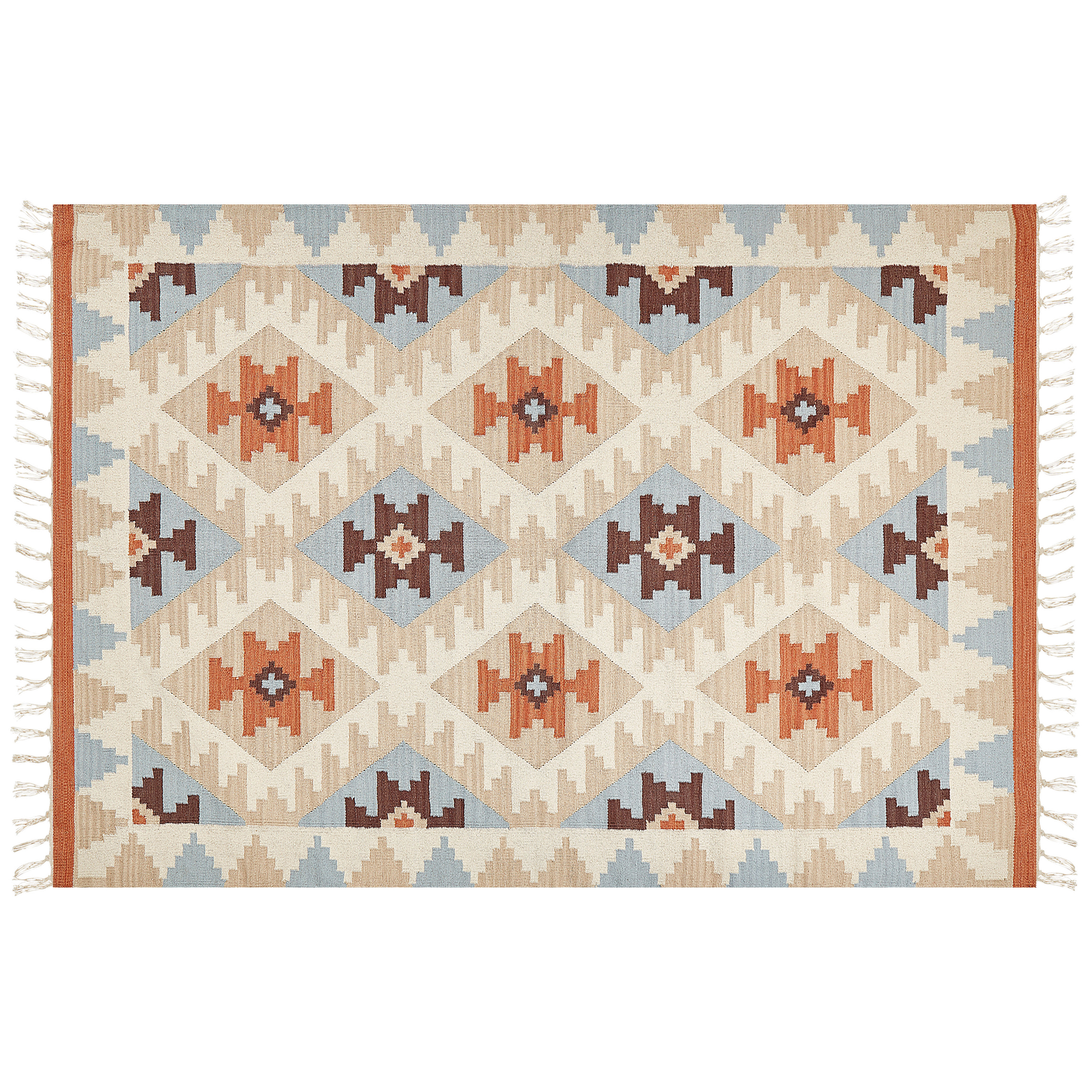 Kelim Teppich Baumwolle mehrfarbig 160 x 230 cm geometrisches Muster Kurzflor DILIJAN