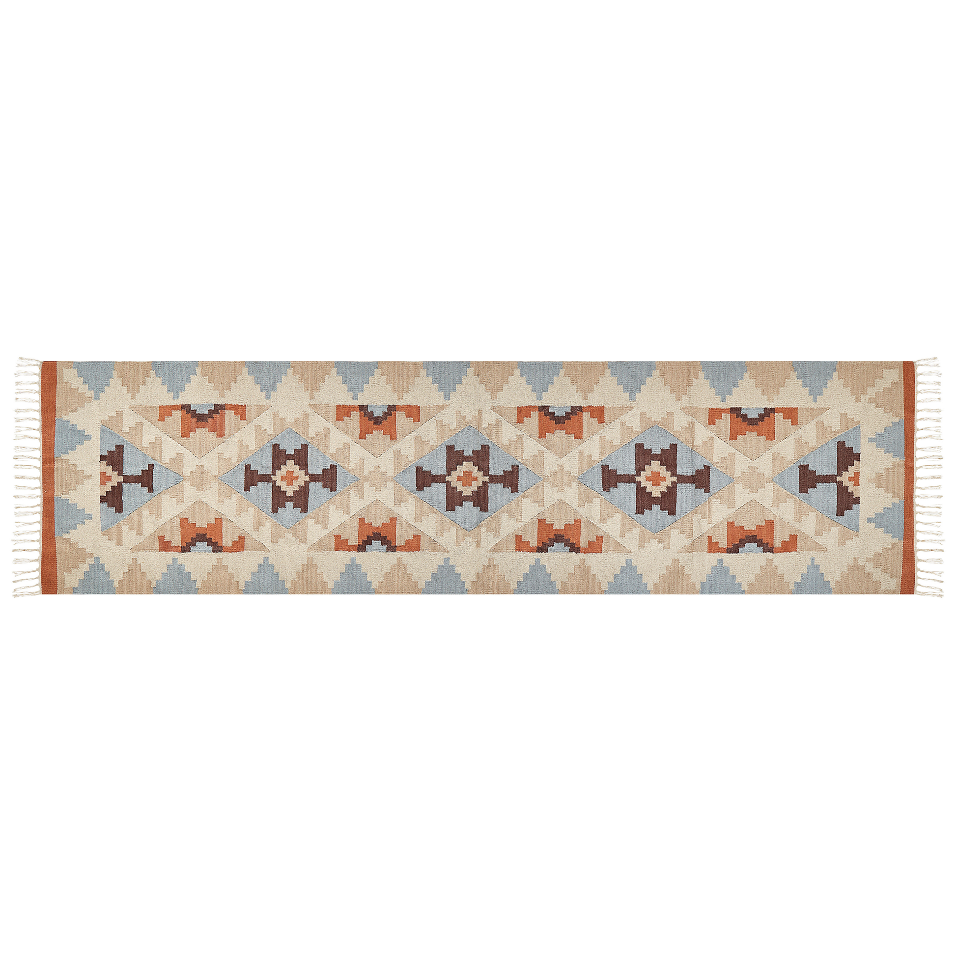 Kelim Teppich Baumwolle mehrfarbig 80 x 300 cm geometrisches Muster Kurzflor DILIJAN