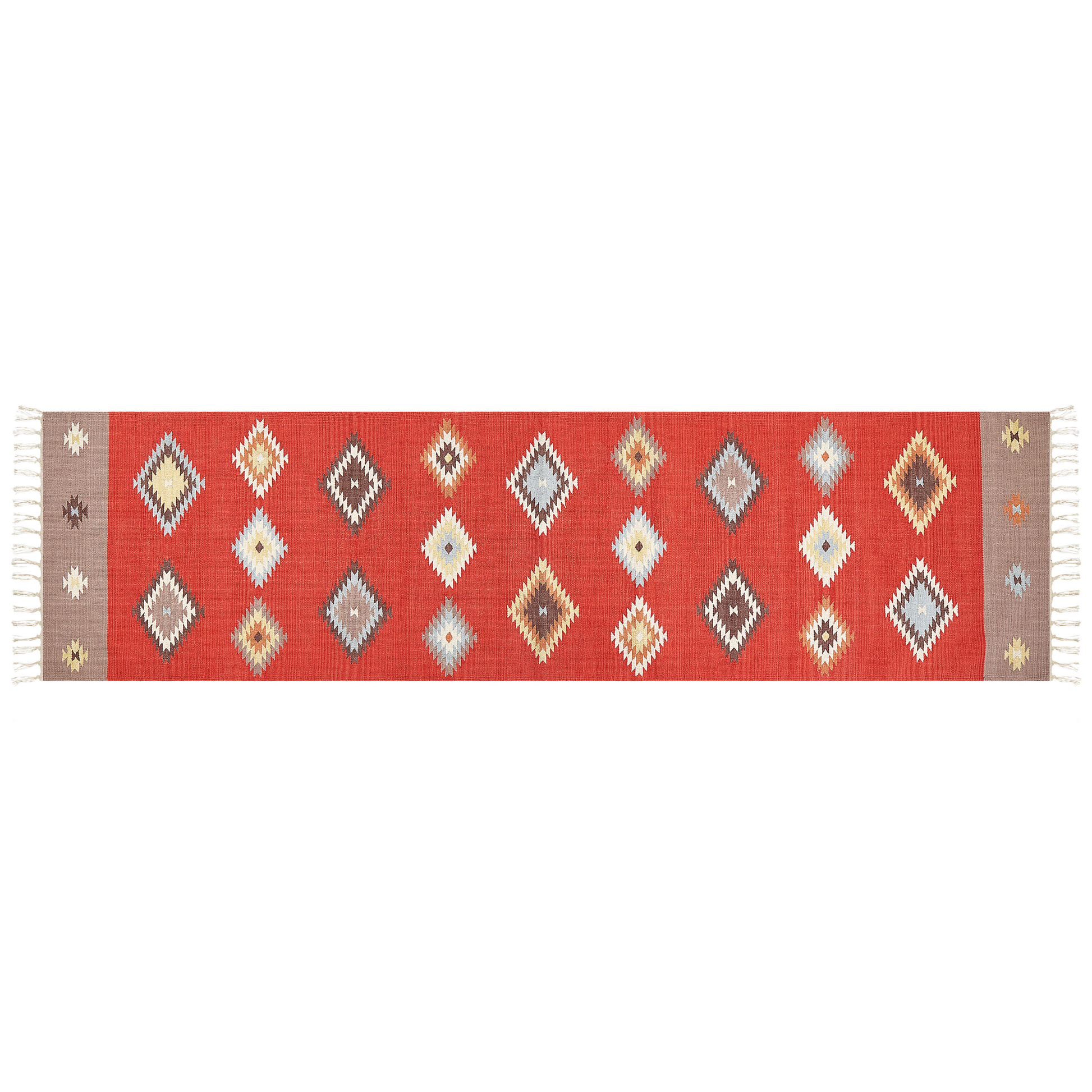 Kelim Teppich Baumwolle mehrfarbig 80 x 300 cm geometrisches Muster Kurzflor LORUT