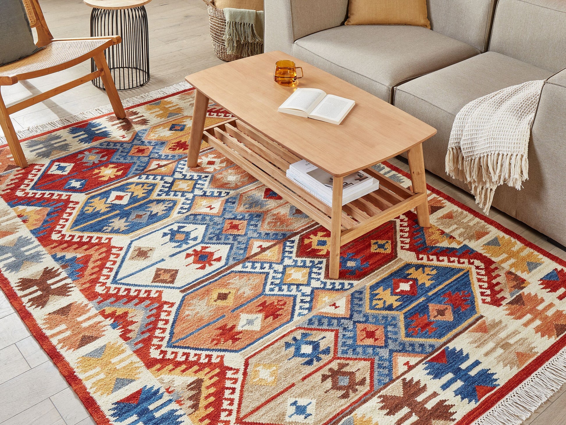 Beschreibung: Wenn Sie auf der Suche nach einem Vorleger sind, der Zeitlosigkeit, Eleganz und Schlichtheit in sich vereint und gleichzeitig Ihr Wohn- oder Schlafzimmer ausfüllt, dann ist dieses Modell perfekt für Sie. Dieser Kelim wurde aus hochwertiger Wolle mit Baumwollzusatz handgefertigt, ist strapazierfähig, beidseitig nutzbar und für Flächen mit Fussbodenheizung geeignet. Das farbenfrohe Muster des Kurzflorteppichs wird kühle Wohnräume auf jeden Fall beleben. Material: Wolle. Zusätzliches Material: Baumwolle. Material Zusammensetzung: 80% Wolle, 20% Baumwolle Gewicht: 6 Montage: Benötigt keine Montage Das Angebot beinhaltet: 1 x Teppich zusätzliche Information: Der Artikel könnte Haare verlieren. Dies ist ein normaler Vorgang und stellt keinen Qualitätsmangel des Produkts dar., Da der Teppich handgewebt ist, können kleine Farb-, Muster-, bzw. Grössendifferenzen auftreten. Diese Unterschiede stellen jedoch keinen Produktfehler dar., Der Artikel benötigt einige Zeit, bis er seinen ursprünglichen Zustand erreicht hat – daher sollte er so schnell wie möglich ausgerollt werden und innerhalb von 72 Stunden seine vollständige Grösse wieder erreichen. Für einen optimalen Effekt sollte man die Teppichkanten mit schweren Gegenständen fixieren. Gestalten: Rechteckig Breite: 160 Länge: 230 Art: Teppich Stil: Klassisch Allgemeine Farbe: Bunt Muster: Abstraktes Muster Hauptmaterial: Wolle Dichte: 1400