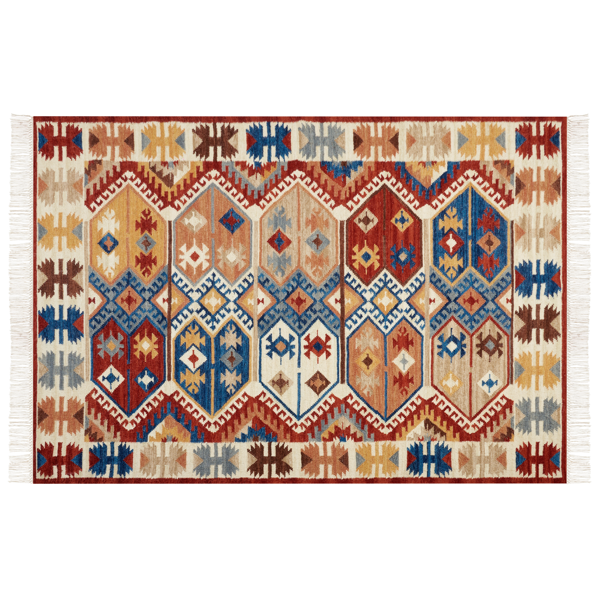 Kelim Teppich Wolle mehrfarbig 160 x 230 cm abstraktes Muster Kurzflor VANASHEN