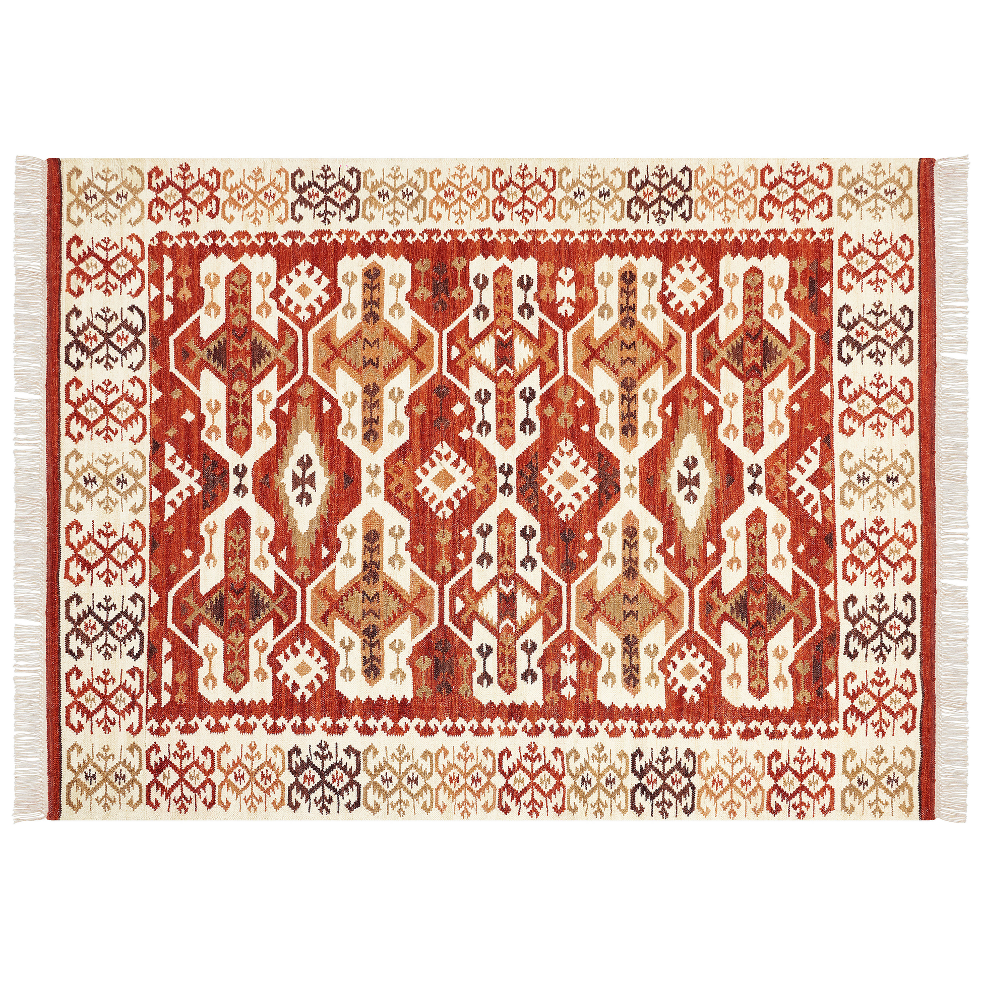 Kelim Teppich Wolle mehrfarbig 160 x 230 cm geometrisches Muster Kurzflor VOSKEVAZ