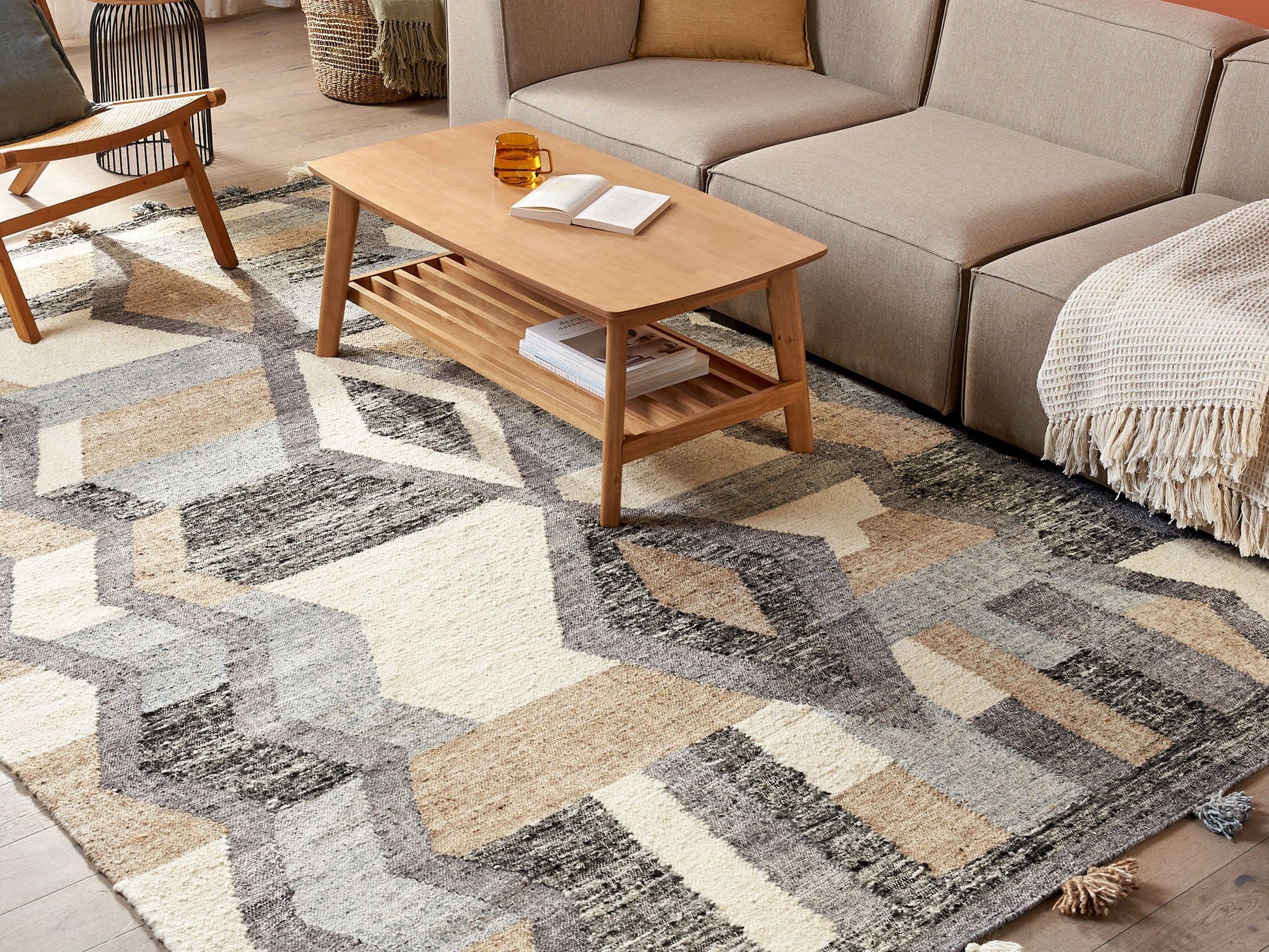 Dieser Kelim wird Sie mit seiner harmonischen Mischung aus traditioneller Technik und moderner Raffinesse begeistern. Er ist mit grösster Sorgfalt aus weicher Wolle mit Baumwollzusatz handgewebt, so ist jedes der Modelle nicht nur angenehm weich sondern auch immer ein Unikat. Dank seiner sanften Materialien umschmeichelt er Ihre Füsse. Das besondere geometrische Muster, das sich aus zeitlosen Motiven in Kombination mit gedämpften Grau- und Beigetönen zusammensetzt, verleiht dem Kurzflor eine angenehme Ausstrahlung. Material: Wolle. Zusätzliches Material: Baumwolle. Material Zusammensetzung: 85% Wolle, 15% Baumwolle Gewicht: 9 Montage: Benötigt keine Montage Das Angebot beinhaltet: 1 x Teppich zusätzliche Information: Der Artikel benötigt einige Zeit, bis er seinen ursprünglichen Zustand erreicht hat – daher sollte er so schnell wie möglich ausgerollt werden und innerhalb von 72 Stunden seine vollständige Grösse wieder erreichen. Für einen optimalen Effekt sollte man die Teppichkanten mit schweren Gegenständen fixieren., Jeder Artikel ist ein handgefertigtes Unikat; Farbschattierung und Muster können daher vom Foto abweichen. Gestalten: Rechteckig Breite: 200 Länge: 300 Art: Teppich Stil: Boho Allgemeine Farbe: Bunt Muster: Geometrisches Muster Hauptmaterial: Wolle Dichte: 1600