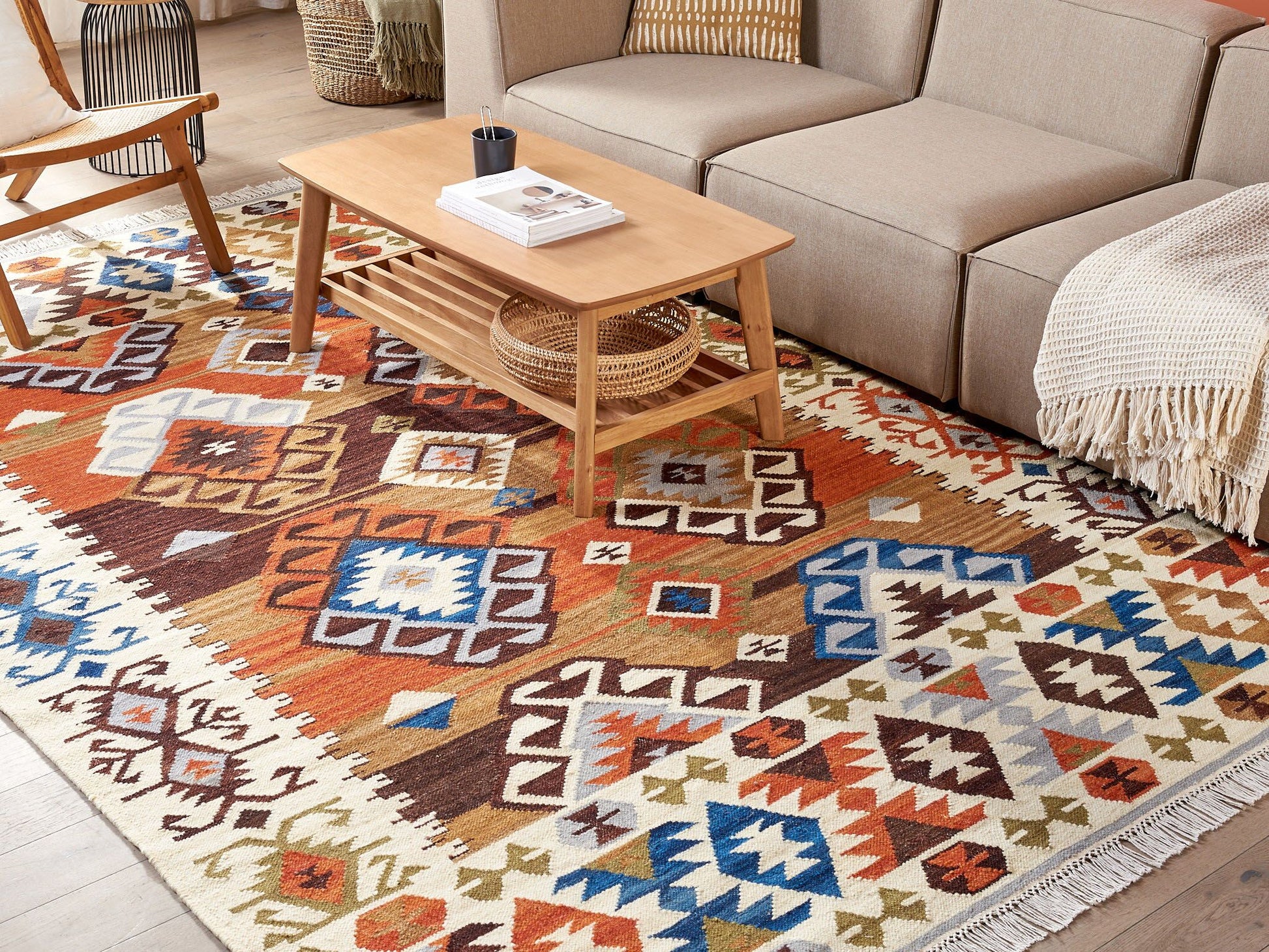 Kelim Teppich Wolle mehrfarbig 200 x 300 cm geometrisches Muster Kurzflor VOSKETAP