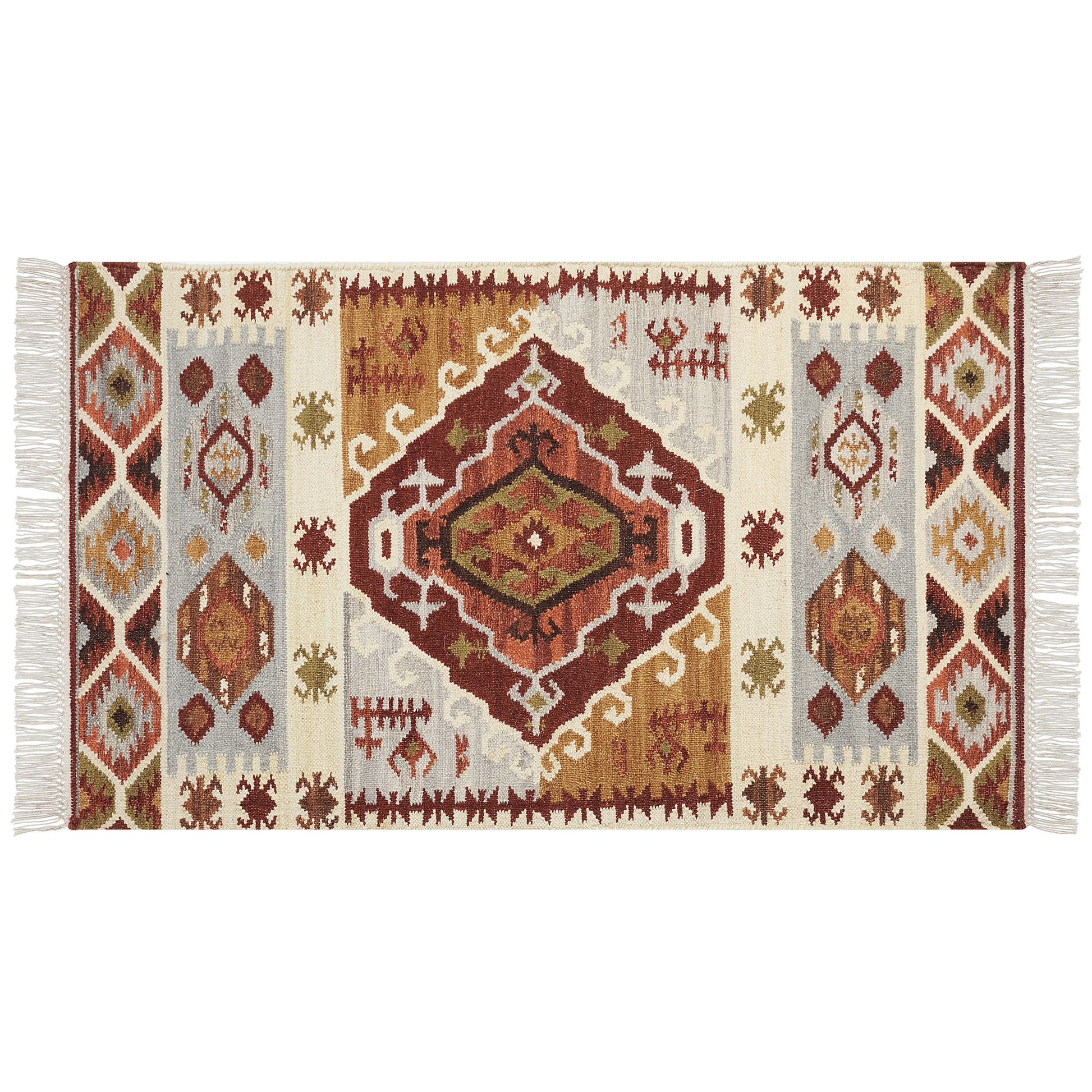 Kelim Teppich Wolle mehrfarbig 80 x 150 cm geometrisches Muster Kurzflor PROSHYAN