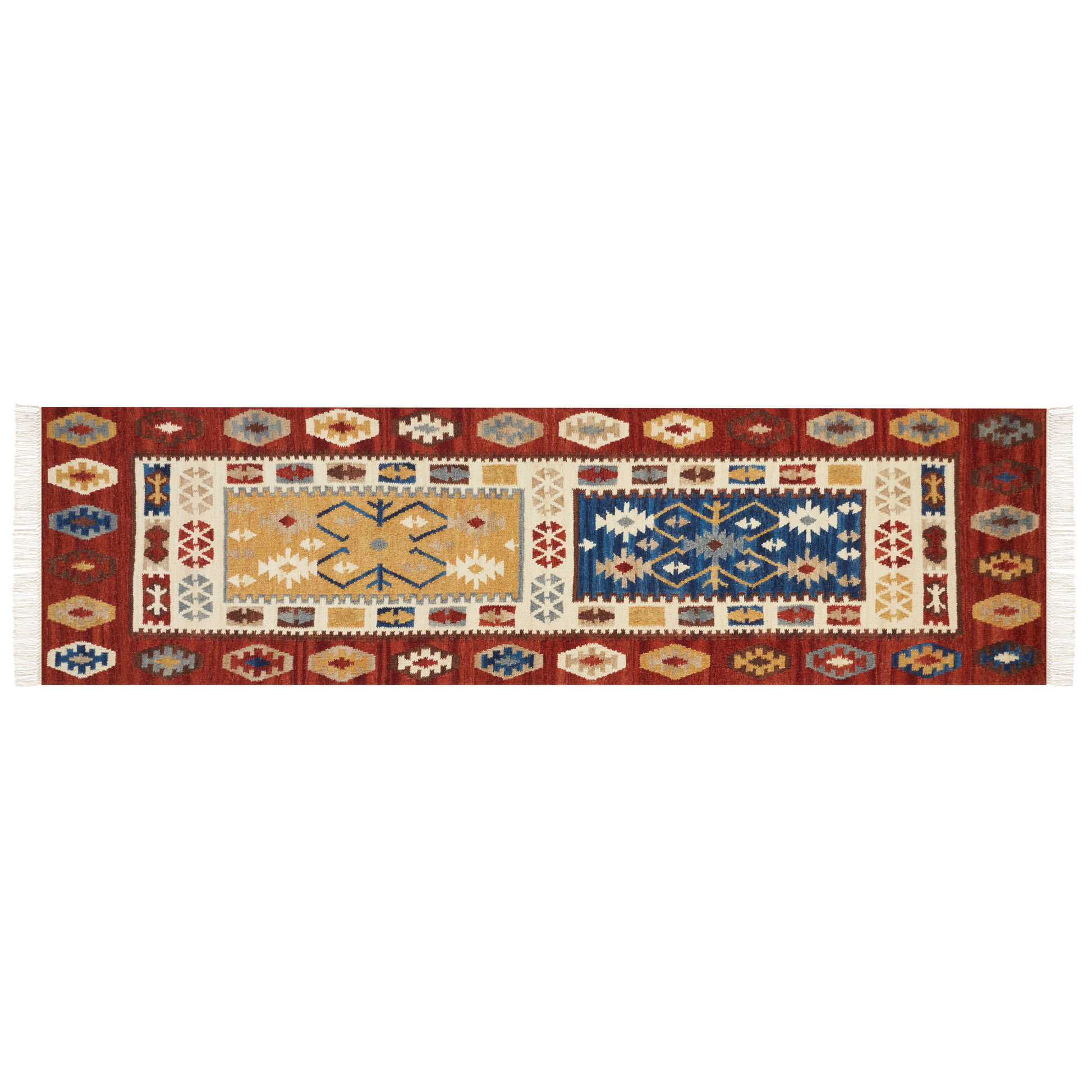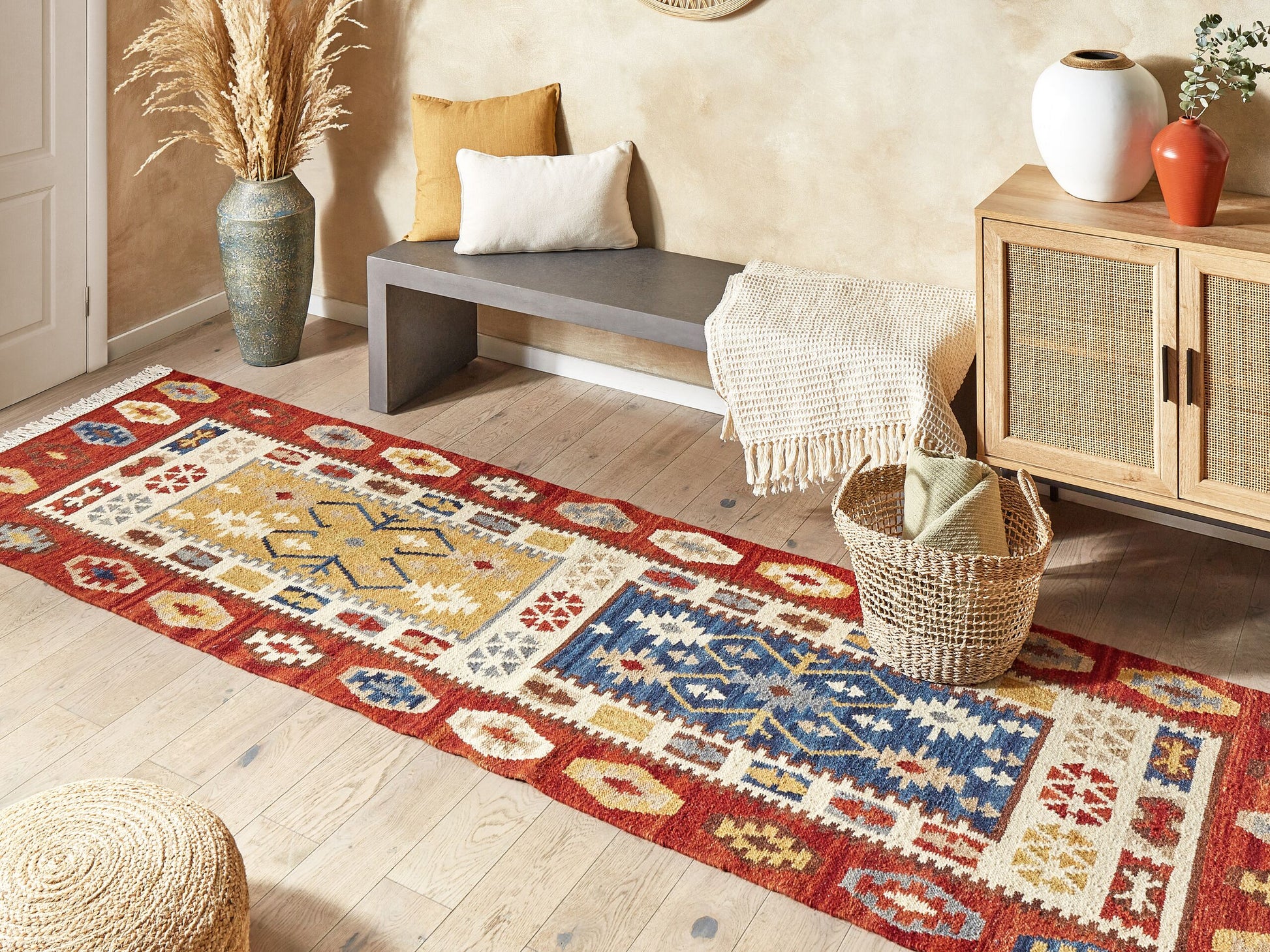 Kelim Teppich Wolle mehrfarbig 80 x 300 cm orientalisches Muster Kurzflor VOSKEHAT