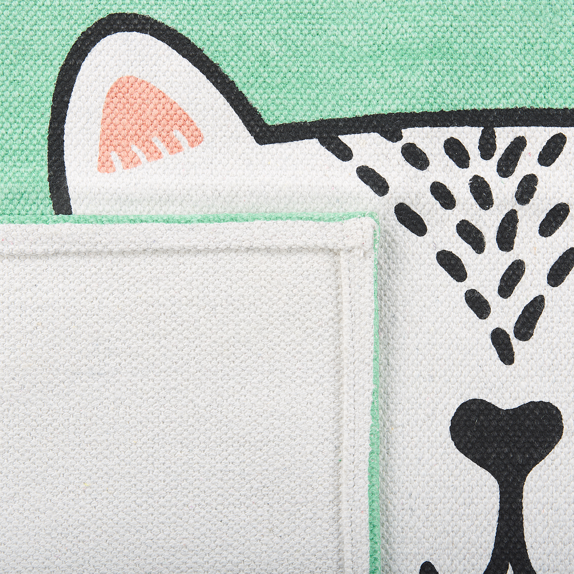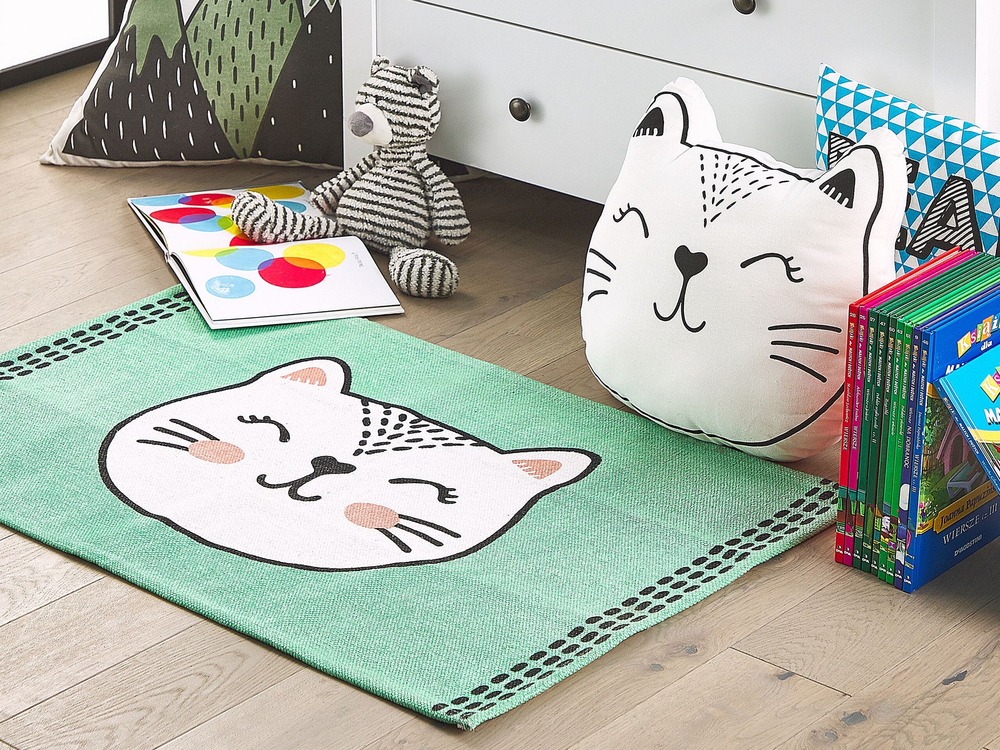 Kinderteppich Baumwolle grün 60 x 90 cm Katzenmotiv Kurzflor HOWRAH