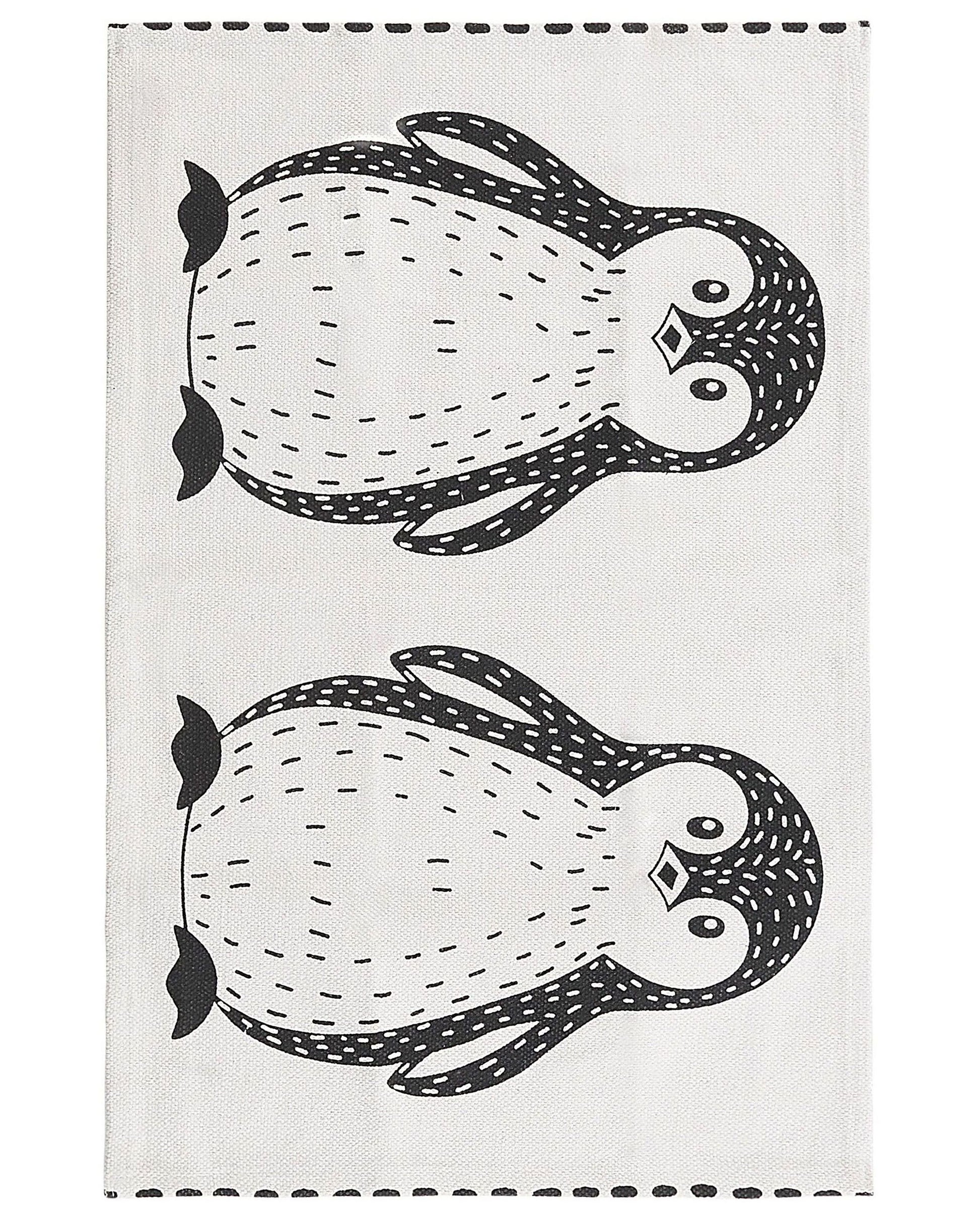 Kinderteppich Baumwolle weiss / schwarz 60 x 90 cm Pinguin-Muster HAJDARABAD