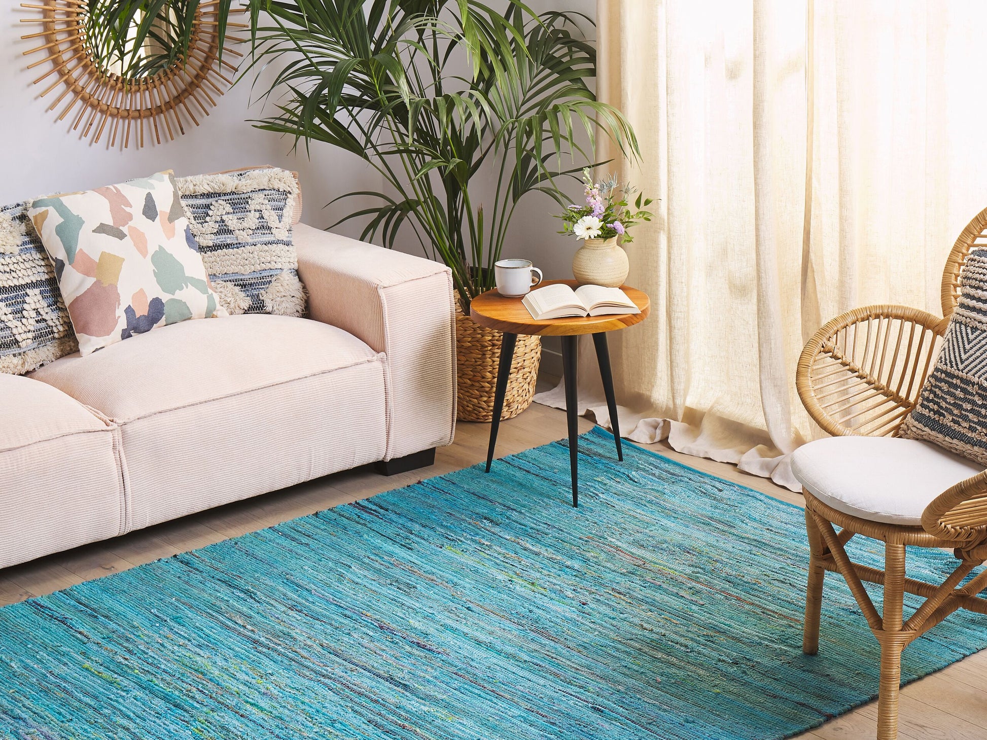 Teppich Baumwolle blau 140 x 200 cm Kurzflor MERSIN