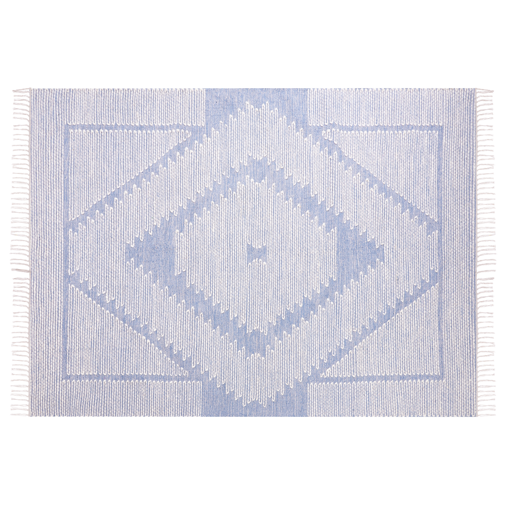 Teppich Baumwolle blau / cremeweiss 140 x 200 cm geometrisches Muster Kurzflor ANSAR