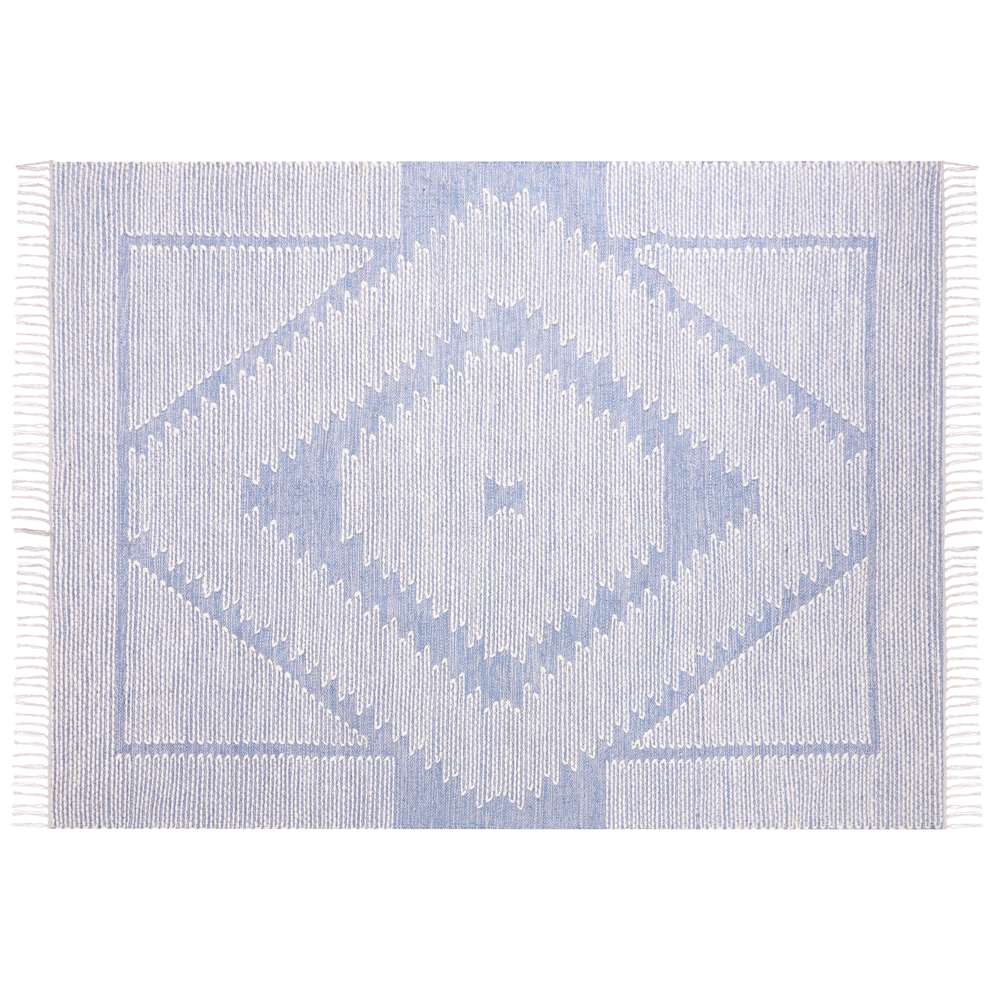 Teppich Baumwolle blau / cremeweiss 160 x 230 cm geometrisches Muster Kurzflor ANSAR