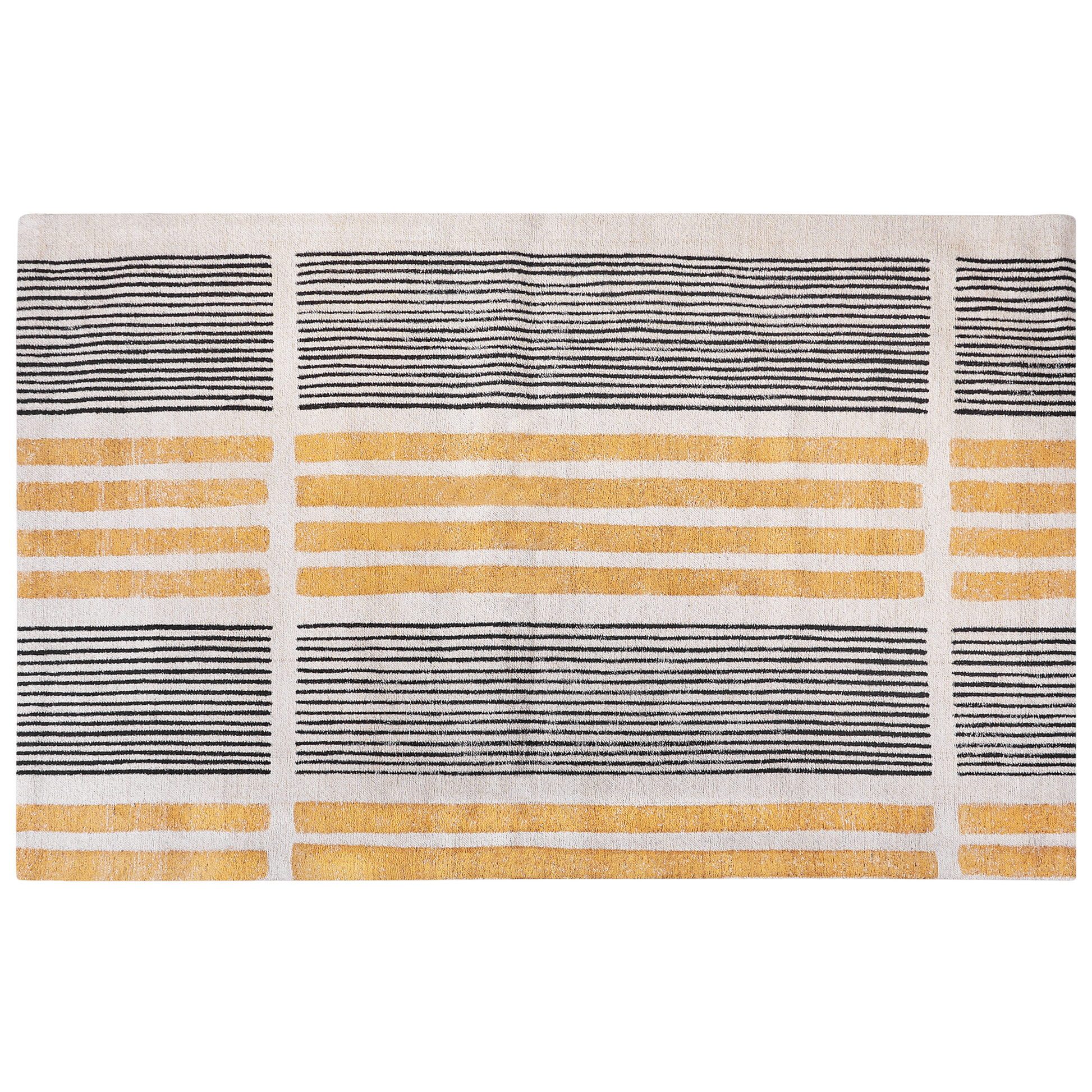 Teppich Baumwolle gelb / schwarz 140 x 200 cm Streifenmuster Kurzflor KATRA