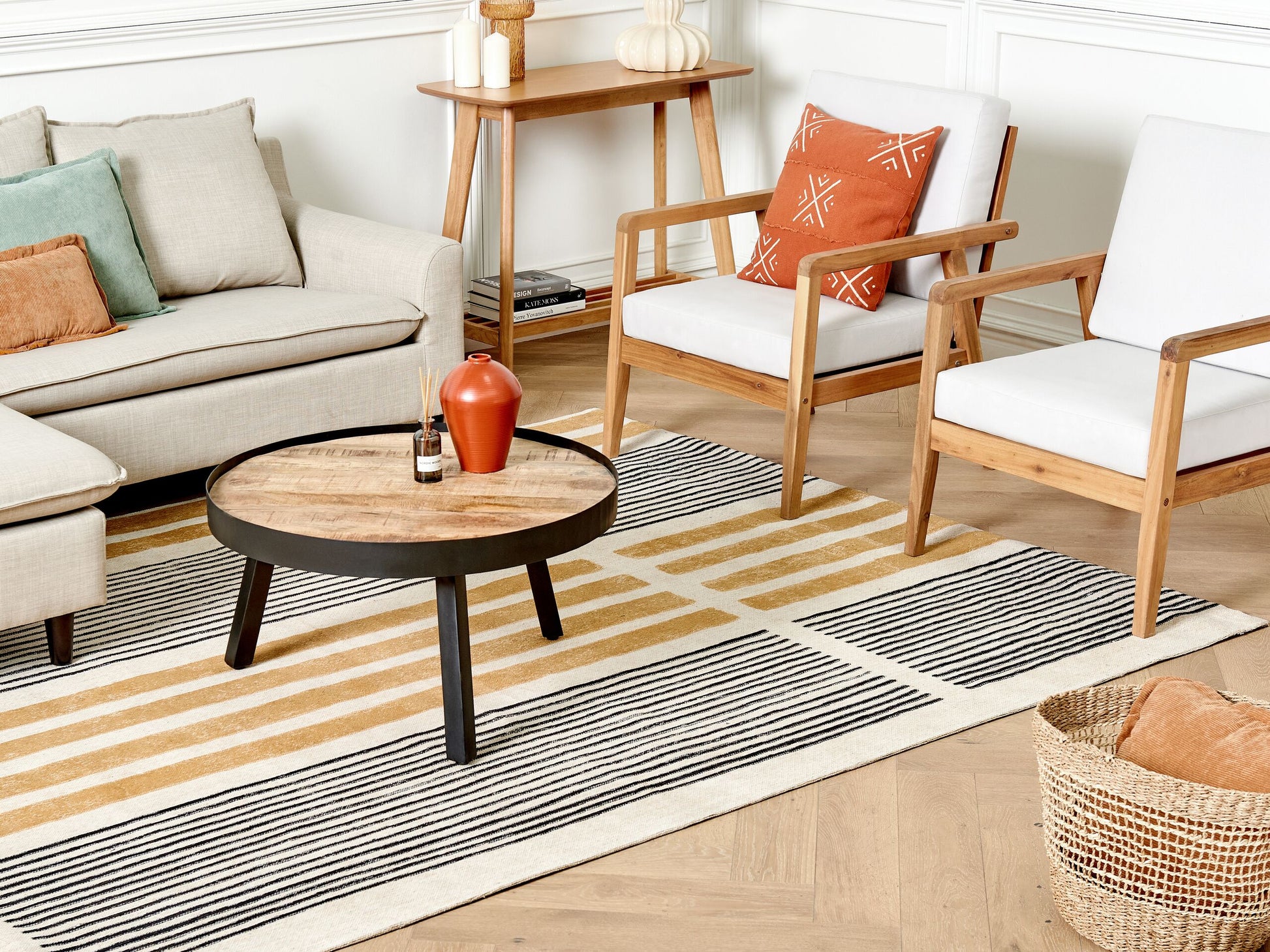 Teppich Baumwolle gelb / schwarz 200 x 300 cm Streifenmuster Kurzflor KATRA