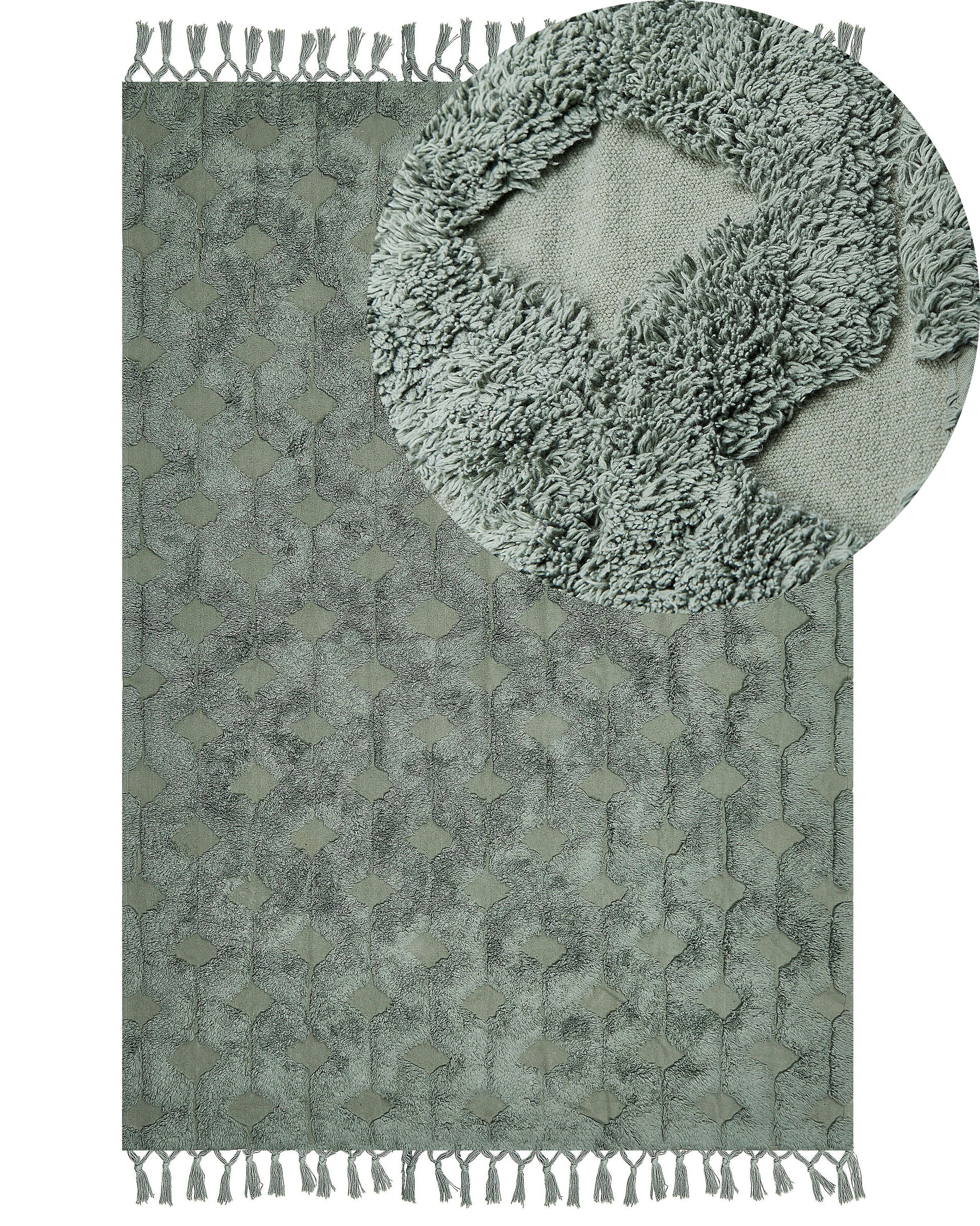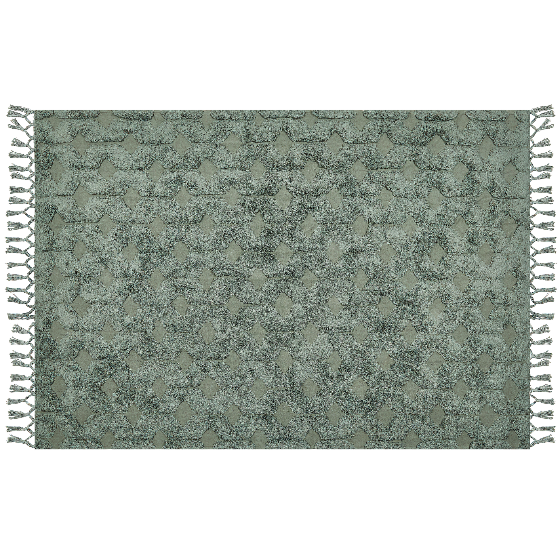 Teppich Baumwolle grün 160 x 230 cm geometrisches Muster Kurzflor KARS