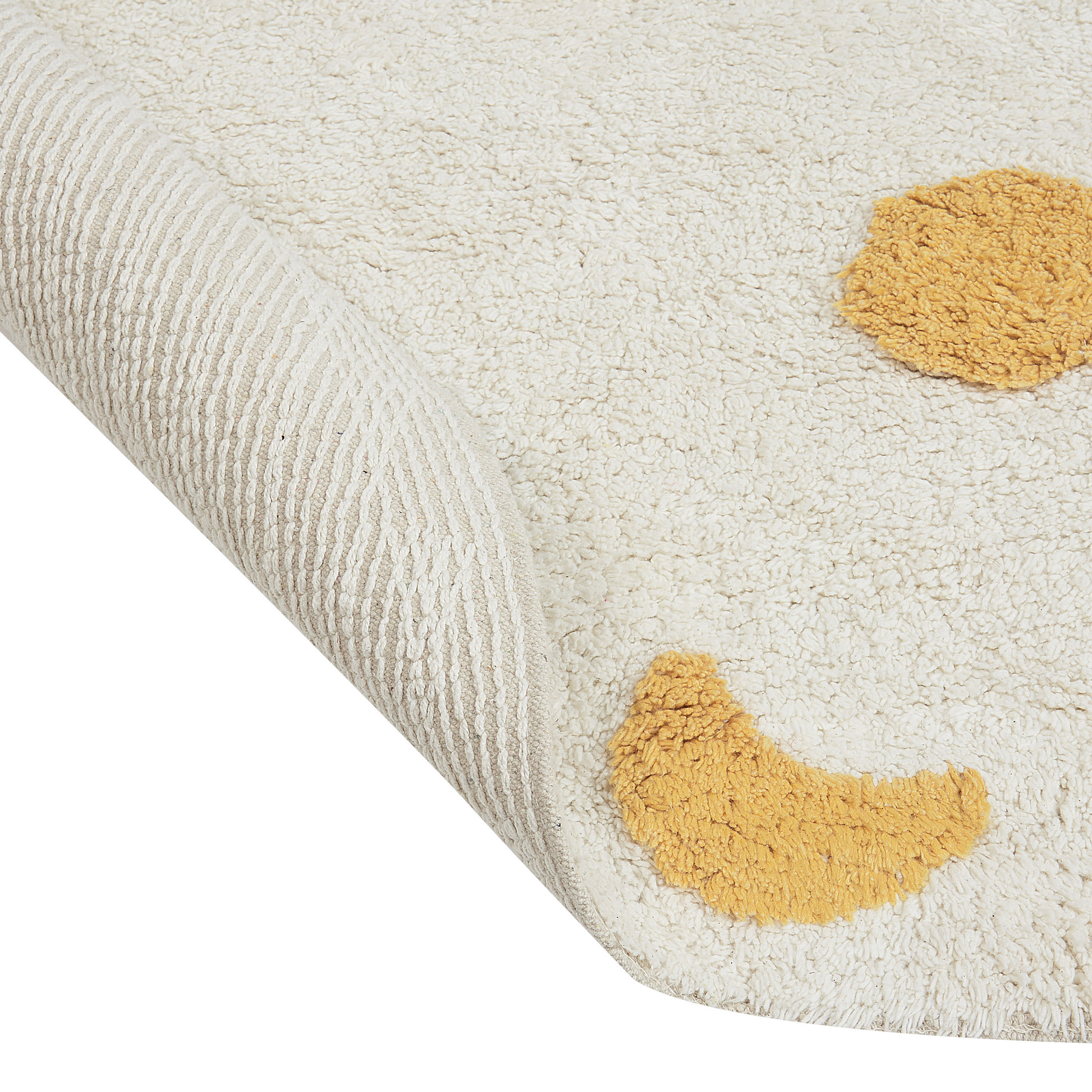 Dieser runde Teppich ist ein echter Blickfang im Kinderzimmer. Das aus Baumwolle gefertigte Stück ist sehr weich und flauschig, bleibt aber auch ohne tägliche Pflege strapazierfähig und langlebig. Die Vorderseite ist hellbeige mit gelben Punkten, die dem Accessoire einen modernen Touch verleihen.  Material: Baumwolle. Material Zusammensetzung: 100% Baumwolle Gewicht: 2.4 Montage: Benötigt keine Montage Das Angebot beinhaltet: 1 x Teppich zusätzliche Information: Der Artikel benötigt einige Zeit, bis er seinen ursprünglichen Zustand erreicht hat – daher sollte er so schnell wie möglich ausgerollt werden und innerhalb von 72 Stunden seine vollständige Grösse wieder erreichen. Für einen optimalen Effekt sollte man die Teppichkanten mit schweren Gegenständen fixieren. Gestalten: Rund Breite: 140 Länge: 140 Art: Kinderteppich Stil: Boho Allgemeine Farbe: Beige Schatten: Hellbeige Muster: Für Kinder Hauptmaterial: Baumwolle Dichte: 1500