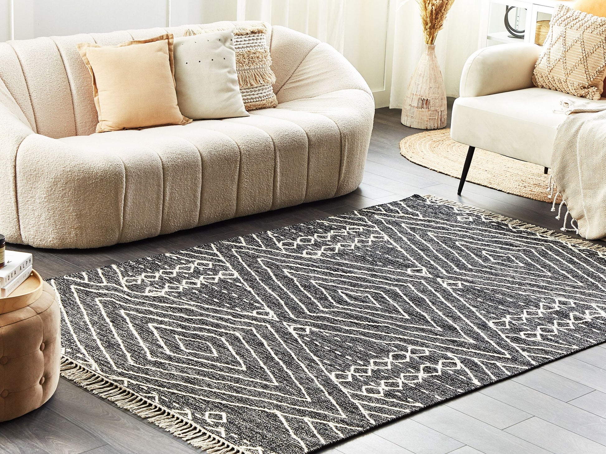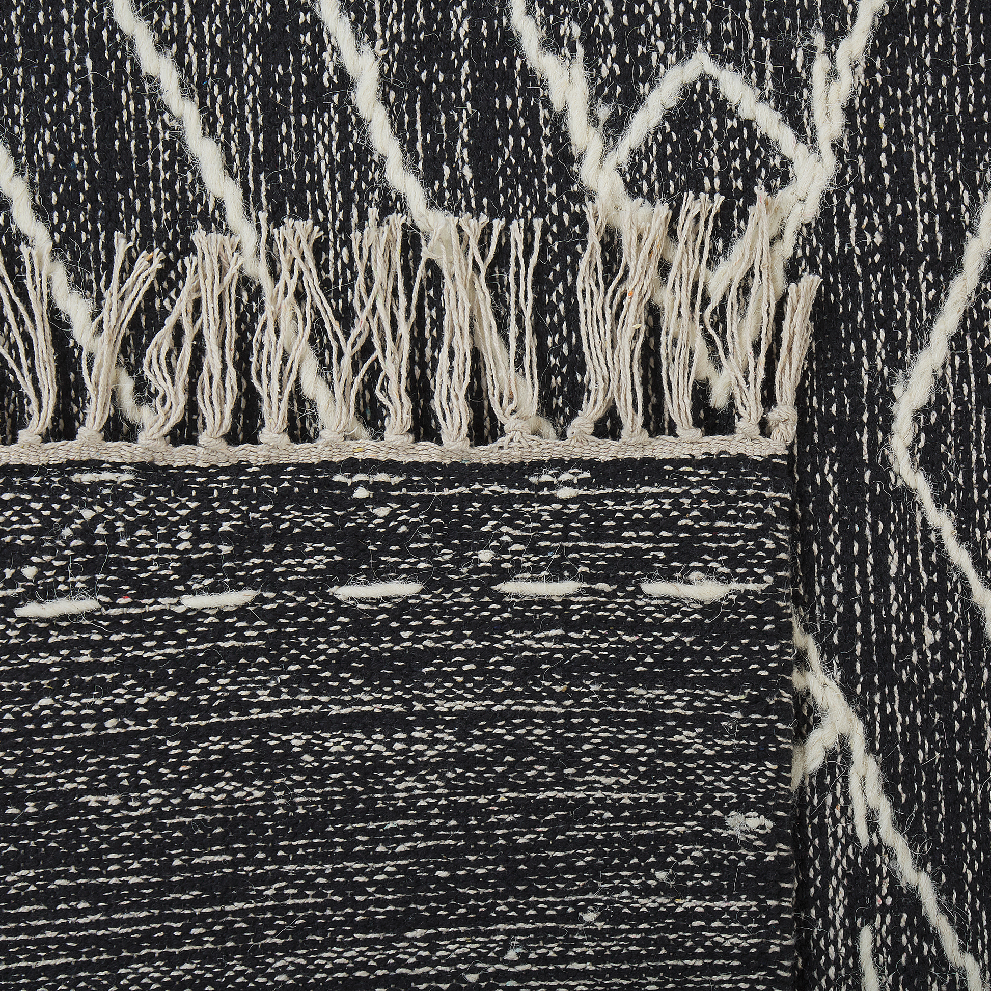 Teppich Baumwolle schwarz / weiss 140 x 200 cm geometrisches Muster Kurzflor KHENIFRA