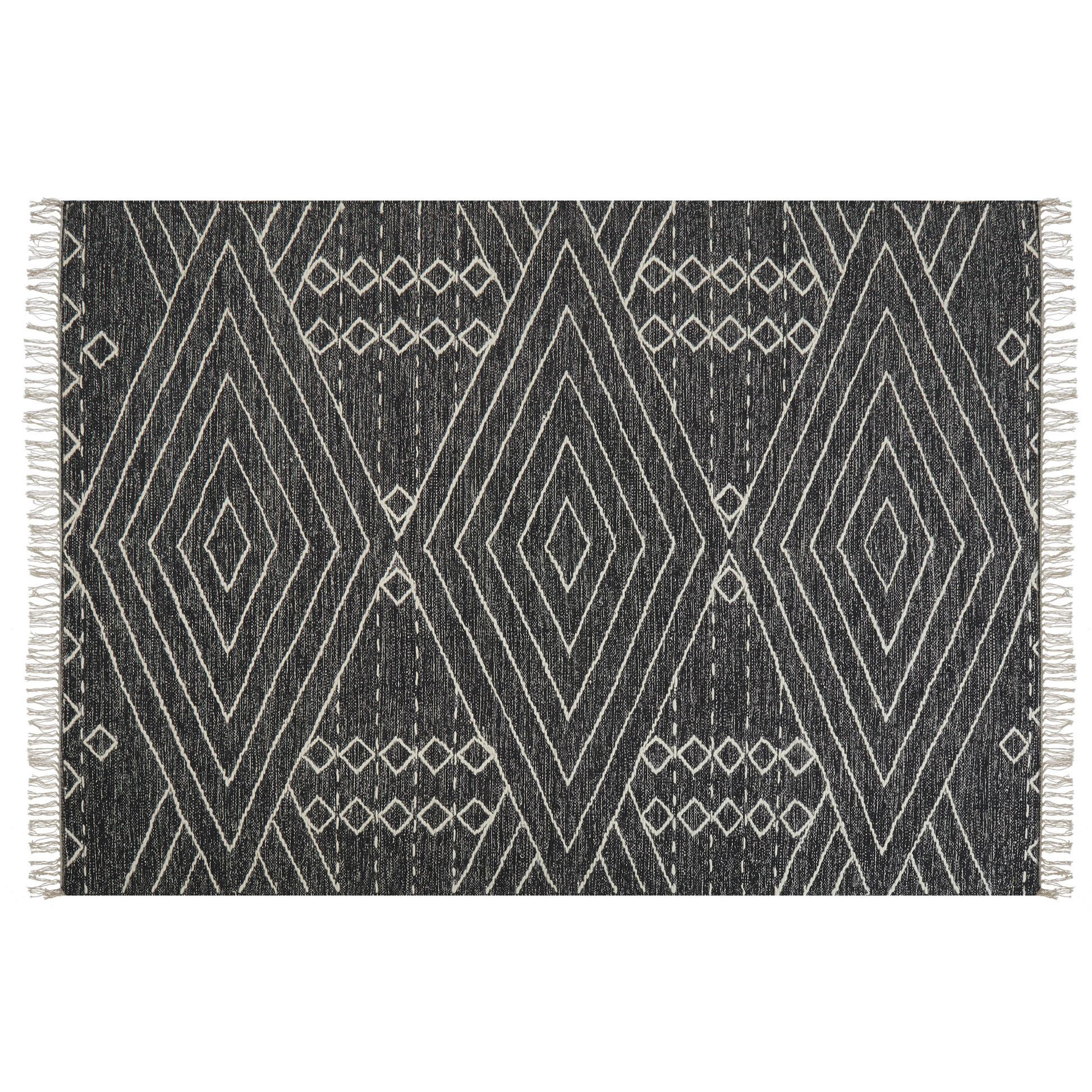 Setzen Sie einen auf einen auffälligen Akzent in Ihrem Wohn- oder Schlafzimmer, der gleichzeitig eine gemütliche Atmosphäre im Raum schafft. Dieser handgefertigte Kurzflorteppich besteht aus hochwertigen Baumwoll- und Wollfasern, die eine lange Lebensdauer garantieren. Das geometrische Muster und die dekorativen Fransen verleihen ihm einen orientalischen Look. So lässt sich der Vorleger ausgezeichnet in jedem Zimmer einsetzen in dem bohemische Behaglichkeit geschätzt wird. Material: Baumwolle. Zusätzliches Material: Wolle. Material Zusammensetzung: 30% Wolle, 70% Baumwolle Gewicht: 5.2 Montage: Benötigt keine Montage Das Angebot beinhaltet: 1 x Teppich zusätzliche Information: Da der Teppich handgewebt ist, können kleine Farb-, Muster-, bzw. Grössendifferenzen auftreten. Diese Unterschiede stellen jedoch keinen Produktfehler dar., Der Artikel könnte Haare verlieren. Dies ist ein normaler Vorgang und stellt keinen Qualitätsmangel des Produkts dar., Der Artikel benötigt einige Zeit, bis er seinen ursprünglichen Zustand erreicht hat – daher sollte er so schnell wie möglich ausgerollt werden und innerhalb von 72 Stunden seine vollständige Grösse wieder erreichen. Für einen optimalen Effekt sollte man die Teppichkanten mit schweren Gegenständen fixieren. Gestalten: Rechteckig Breite: 140 Länge: 200 Art: Teppich Stil: Boho Allgemeine Farbe: Schwarz Schatten: Cremeweiss Muster: Geometrisches Muster Hauptmaterial: Baumwolle Dichte: 1770