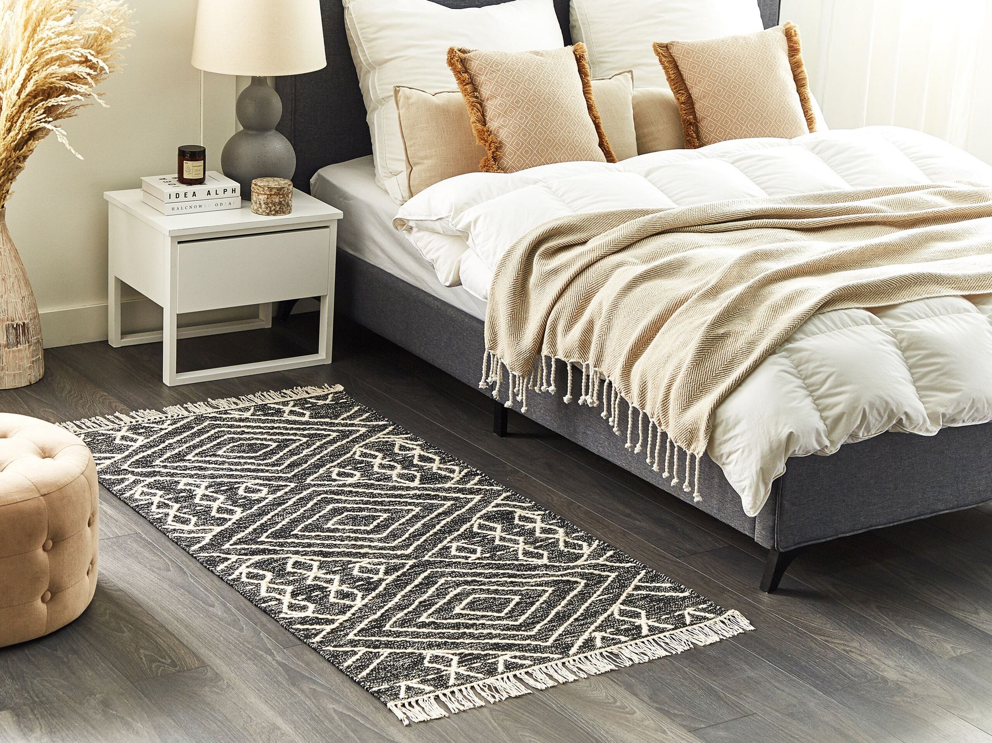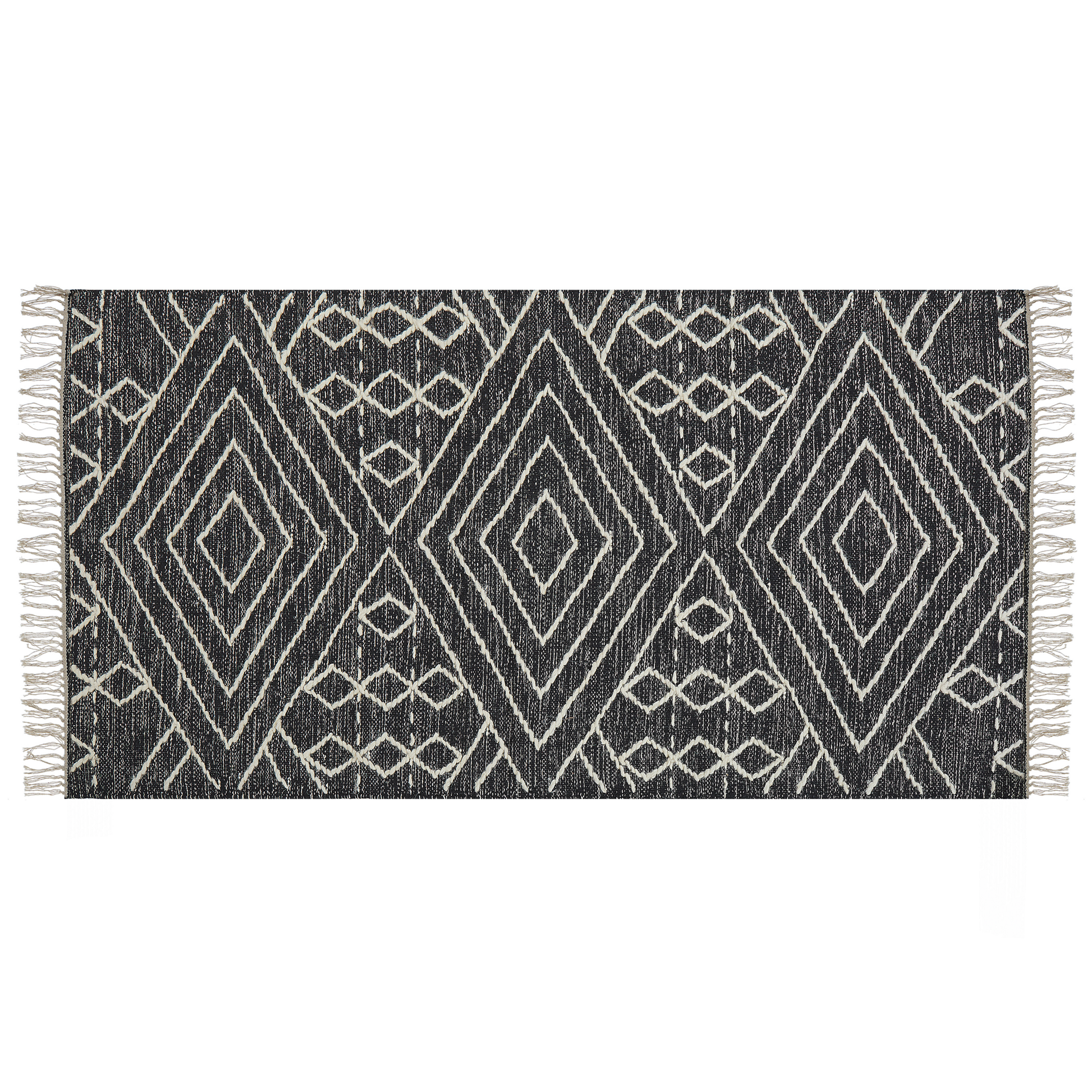 Teppich Baumwolle schwarz / weiss 80 x 150 cm geometrisches Muster Kurzflor KHENIFRA