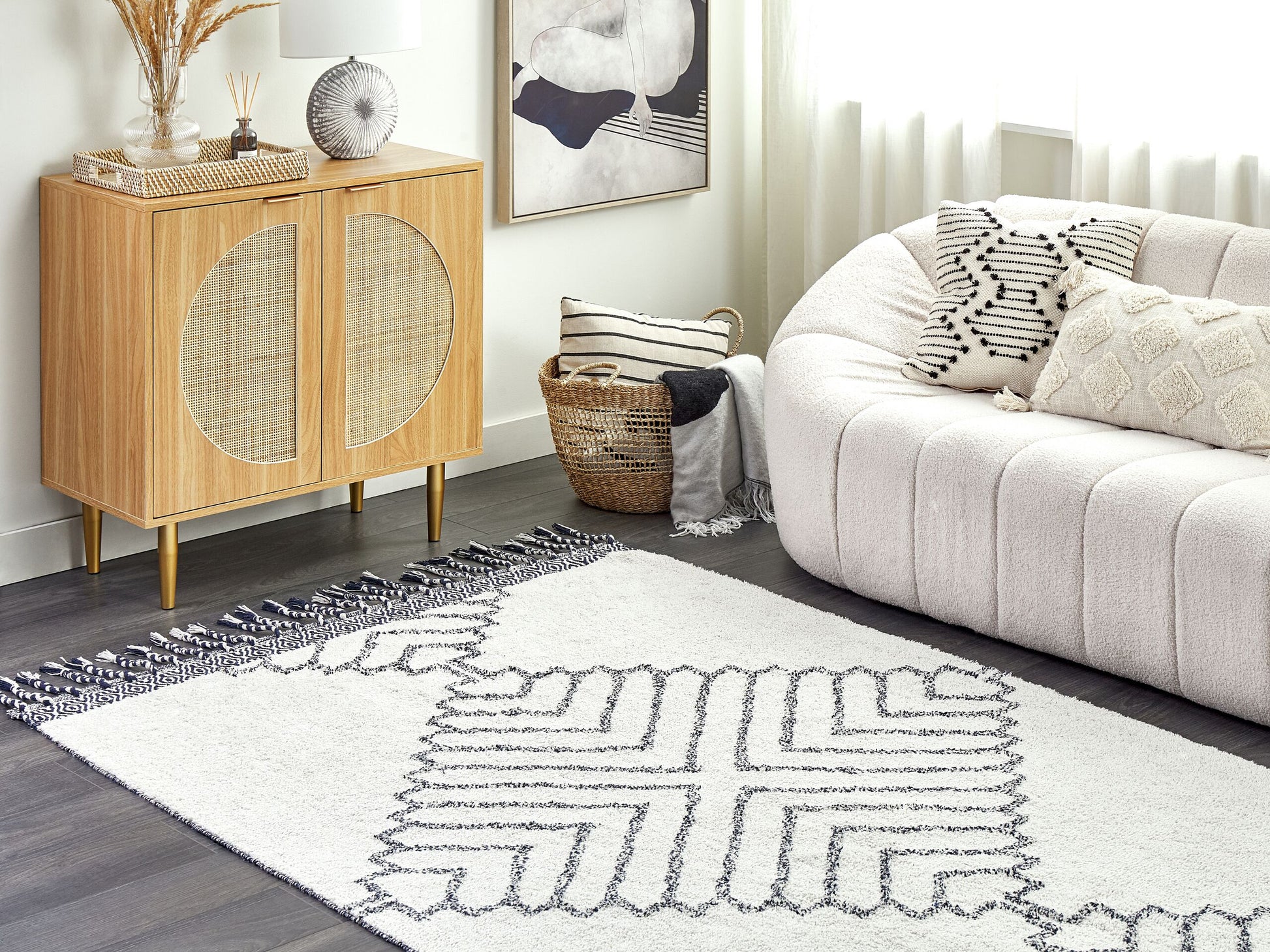 Teppich Baumwolle weiss / schwarz 140 x 200 cm geometrisches Muster Kurzflor ERAY